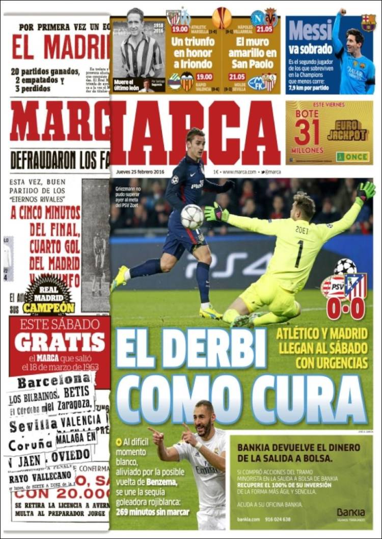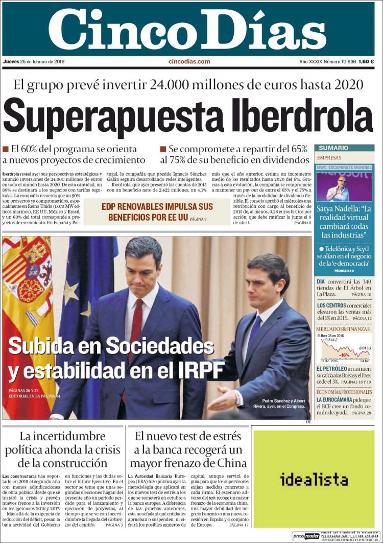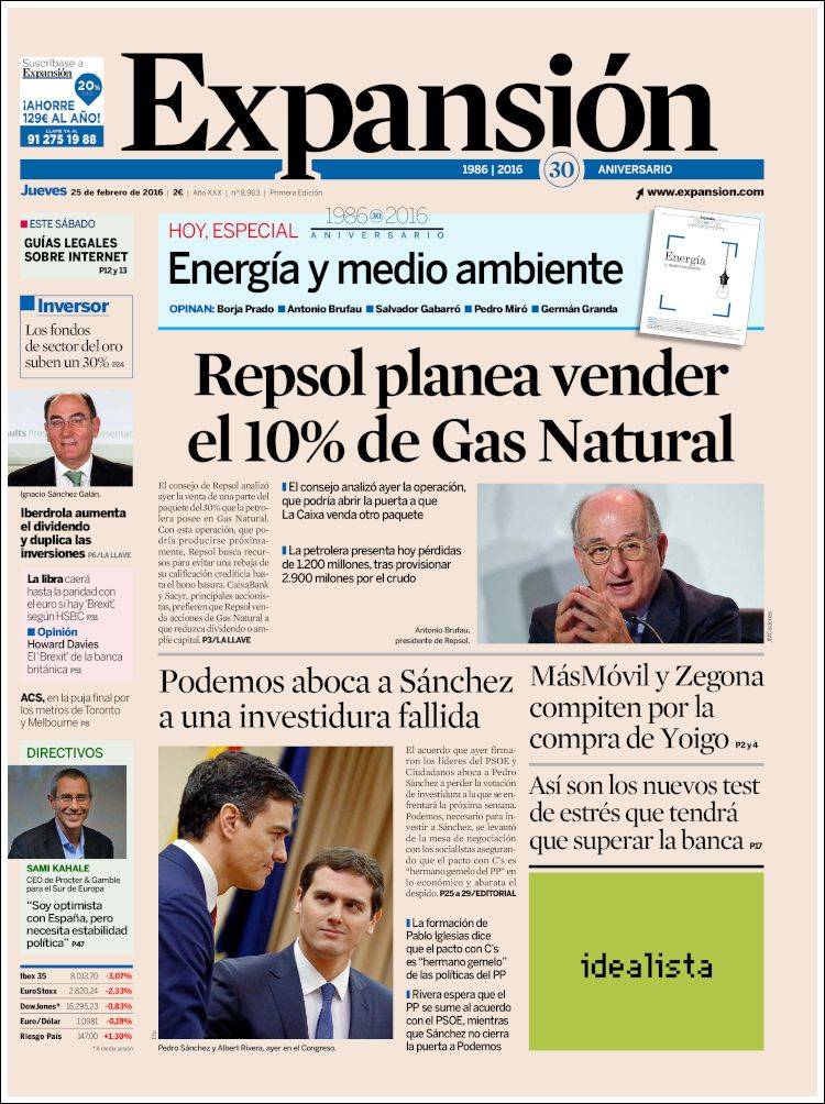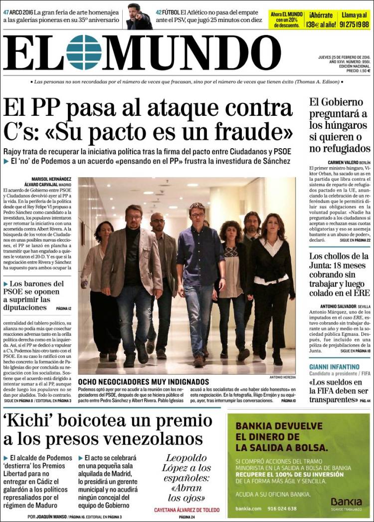 Portadas de los diarios El Mundo, El País, ABC, La Razón, La Vanguardia, El Periódico, Cinco Días, El Economista, Expansión, Marca, As, Mundo Deportivo y Sport.