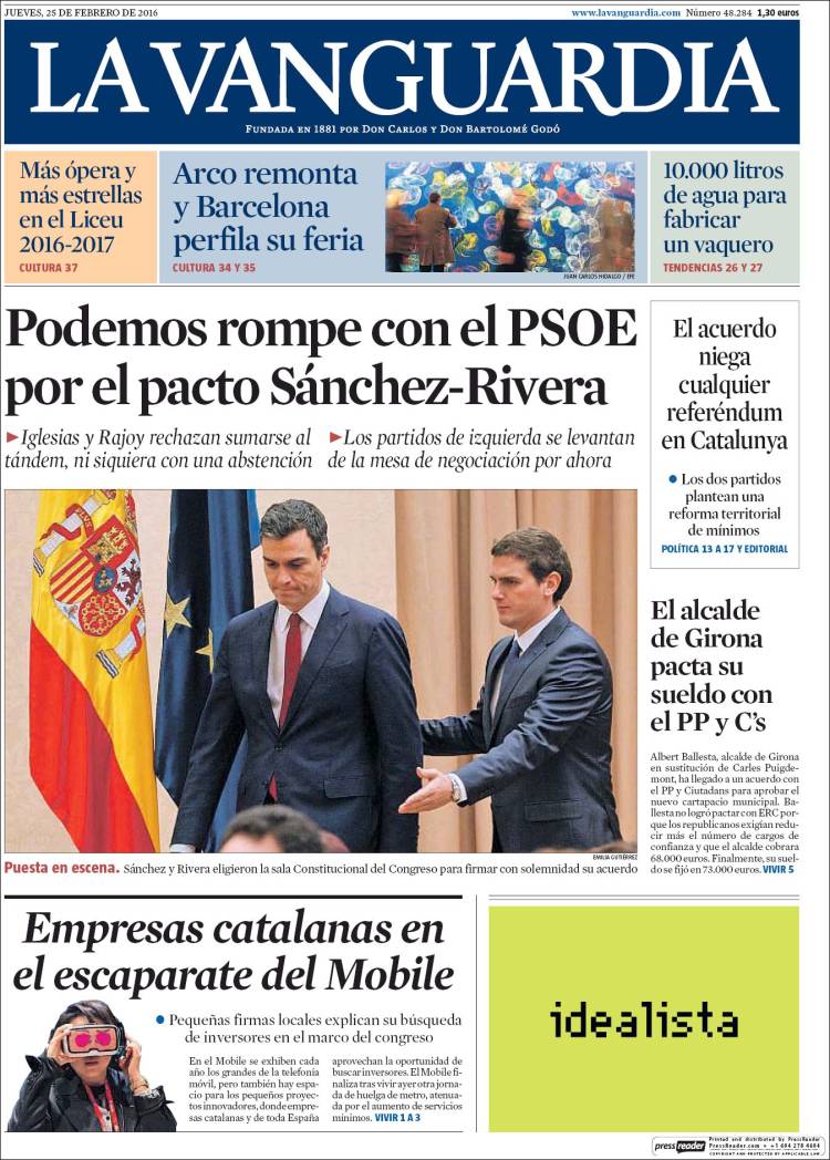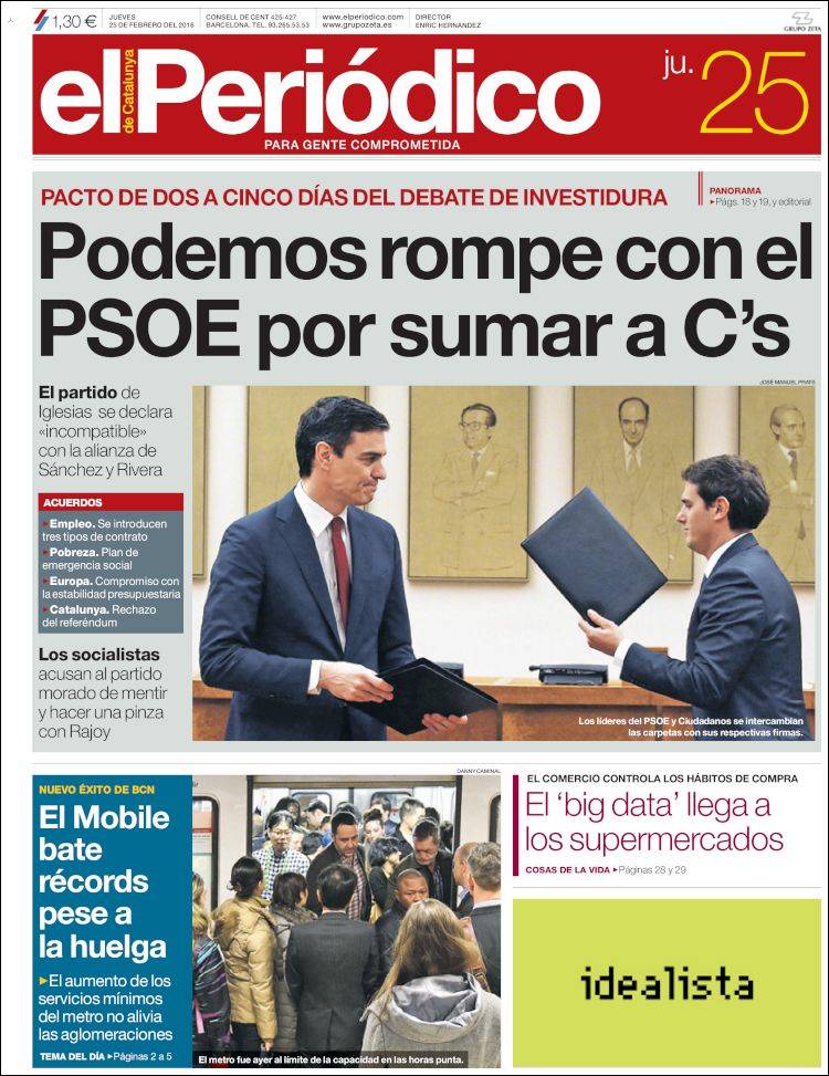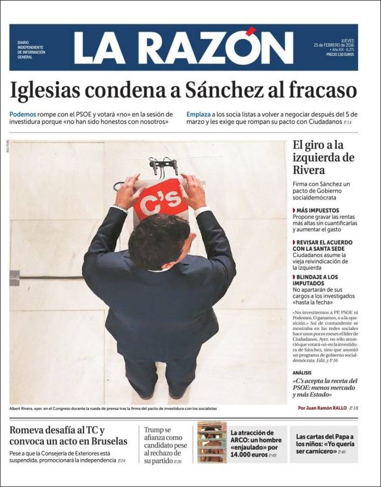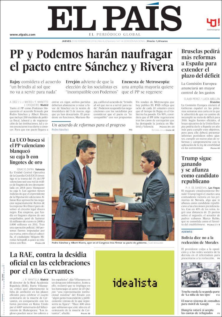 "PP y Podemos harán naufragar el pacto entre Sánchez y Rivera"