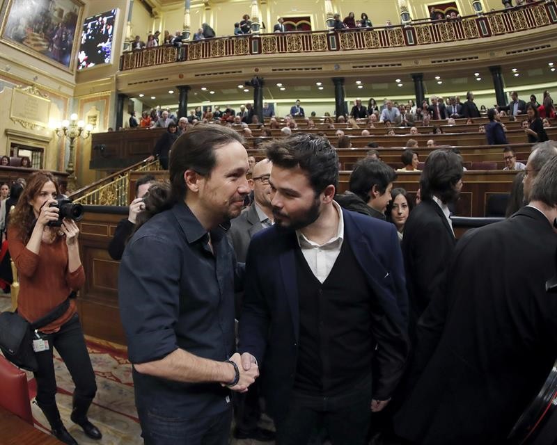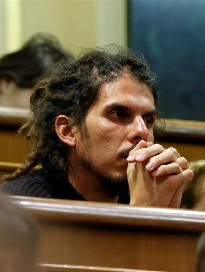 Tras convertirse en una de las imágenes del día en la constitución del Congreso, los fotógrafos siguen atentos al diputado de Podemos.
