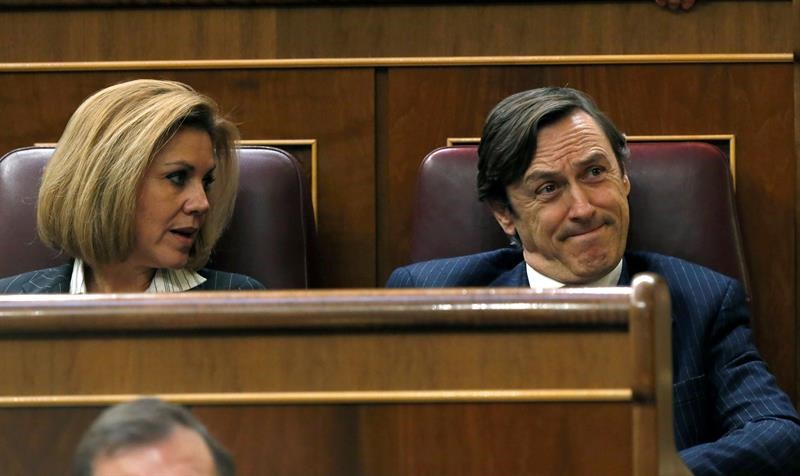La secretaria general del PP no se perdió el discurso. Se sentó con Rafael Hernando, con un gesto muy elocuente en la imagen.