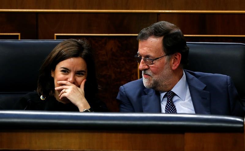 Soraya Sáenz de Santamaría, comentando el discurso con el presidente