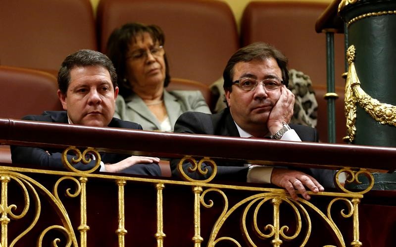 Sánchez tuvo entre los espectadores a barones socialistas como Vara y García Page.
