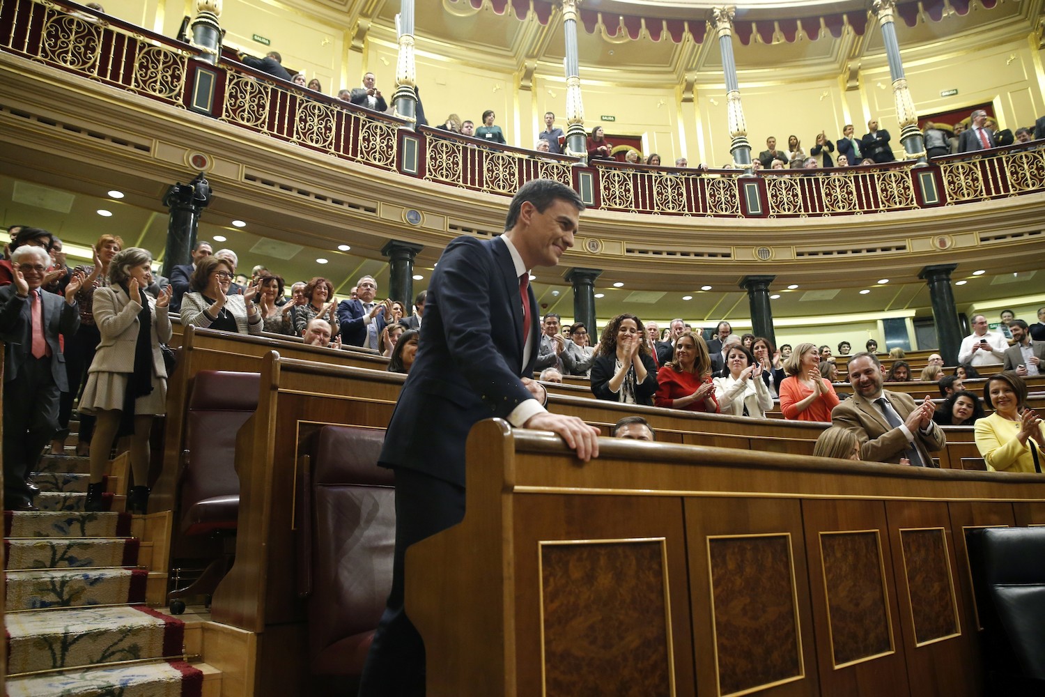 Sánchez, recibido con aplausos y vítores a la entrada del Hemiciclo.