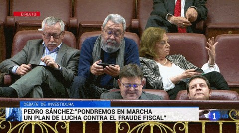 En esta ocasión, las cámaras captaron a Méndez y Toxo con las manos lejos del móvil. No era el caso de otros invitados al Congreso.
