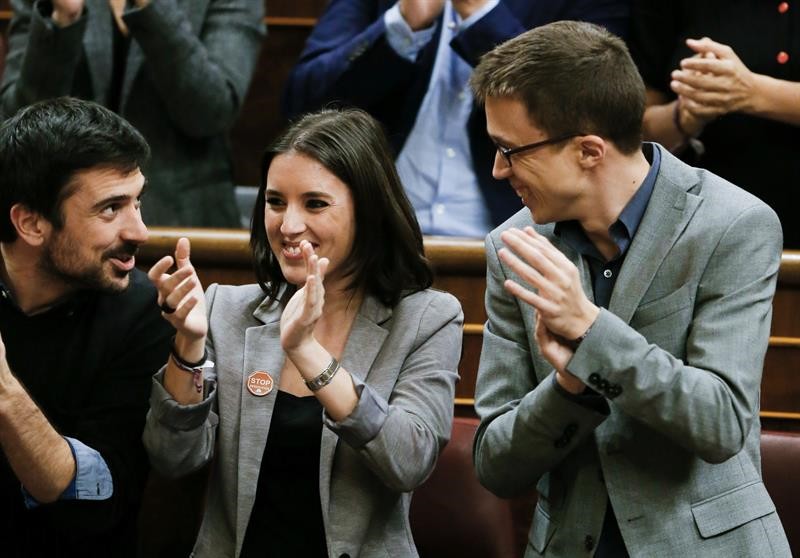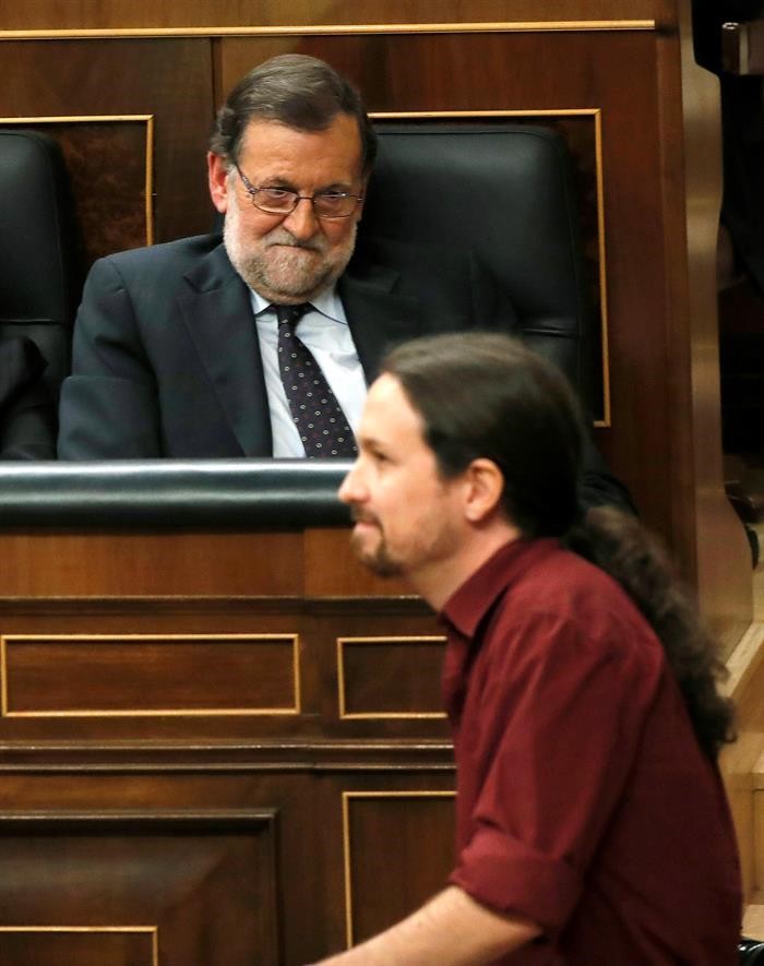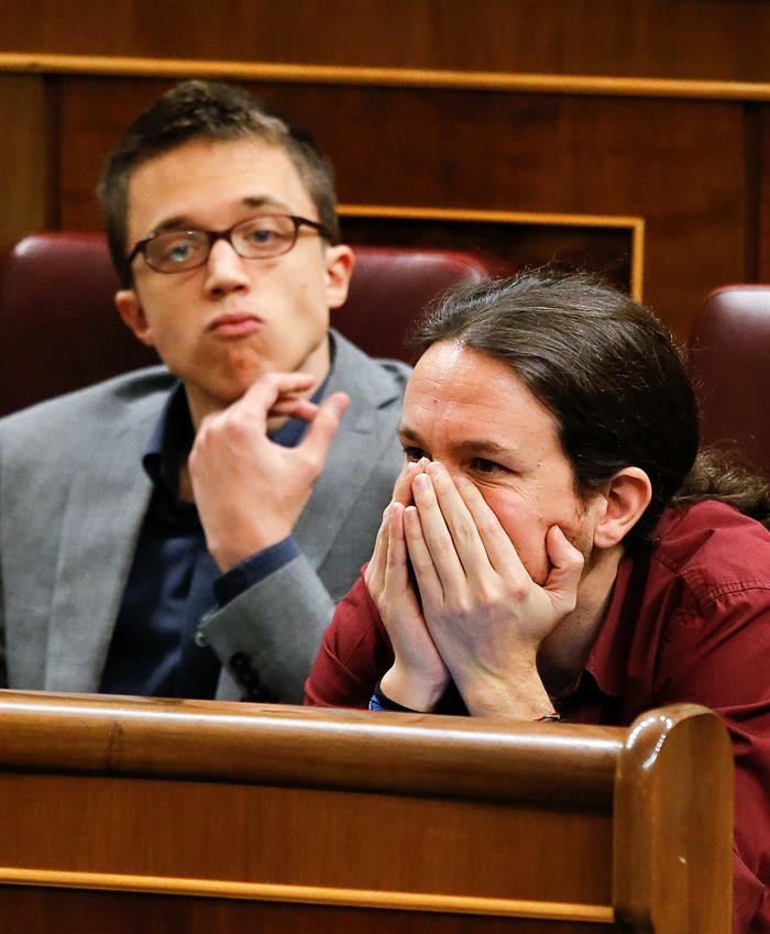 Errejón y, sobre todo, Iglesias, recibieron algunas de las frases de Sánchez con risas y aplausos llenos de ironía.