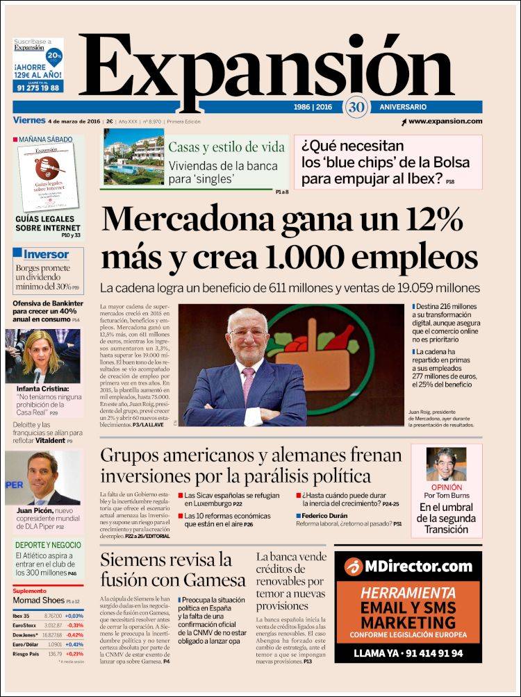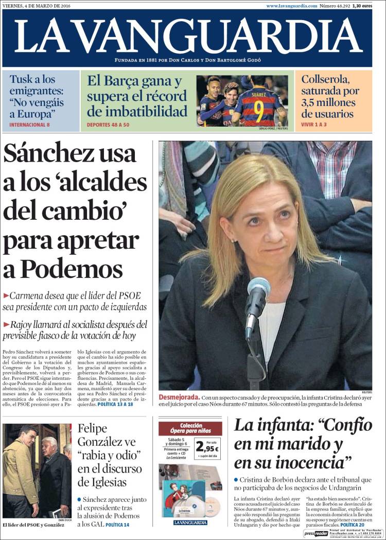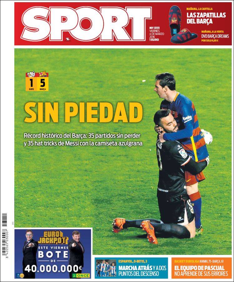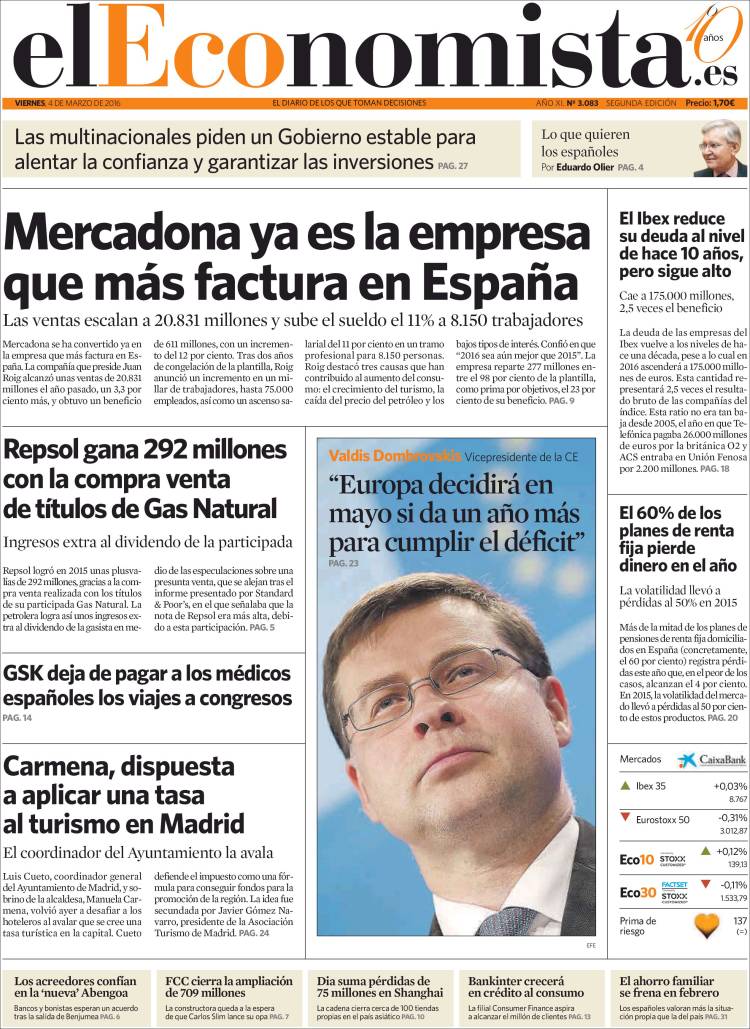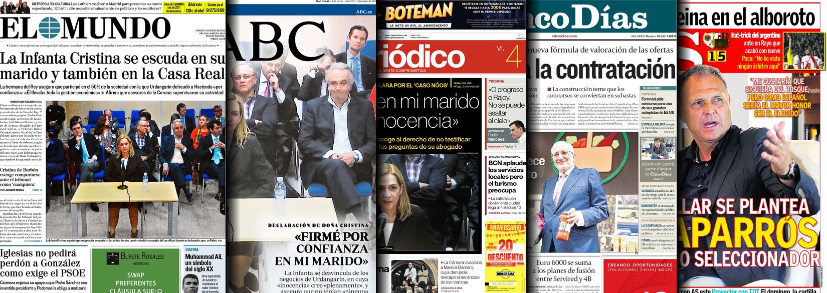 Portadas de los diarios El Mundo, El País, ABC, La Razón, La Vanguardia, El Periódico, Cinco Días, El Economista, Expansión, Marca, As, Mundo Deportivo y Sport.