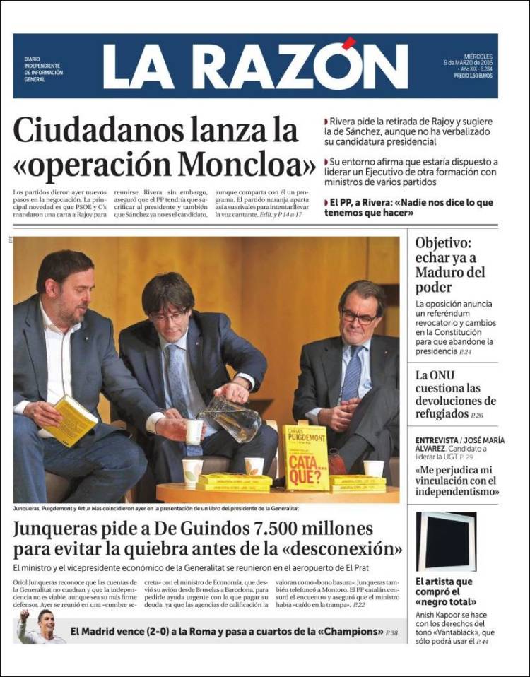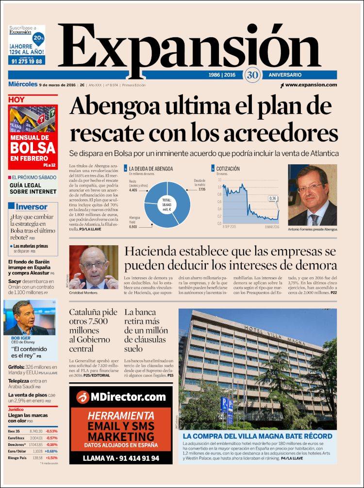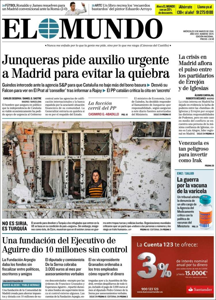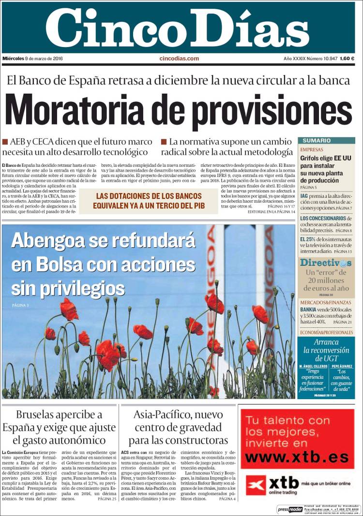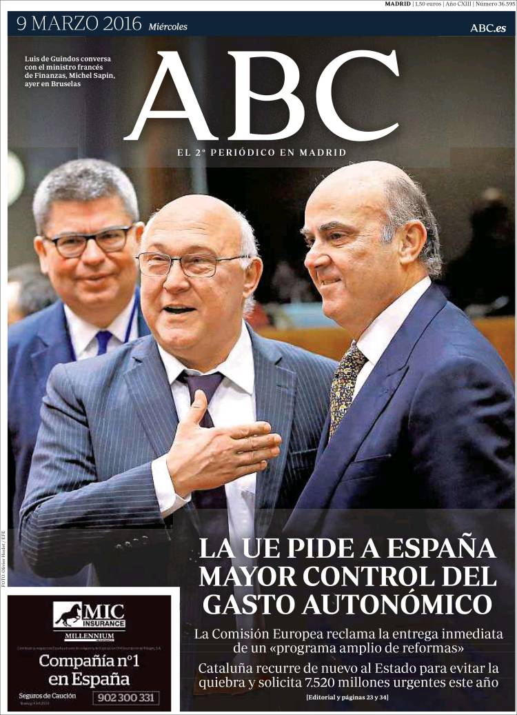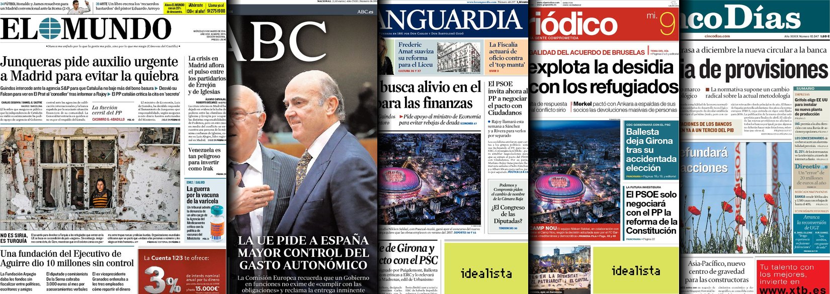 Portadas de los diarios El Mundo, El País, ABC, La Razón, La Vanguardia, El Periódico, Cinco Días, El Economista, Expansión, Marca, As, Mundo Deportivo y Sport.