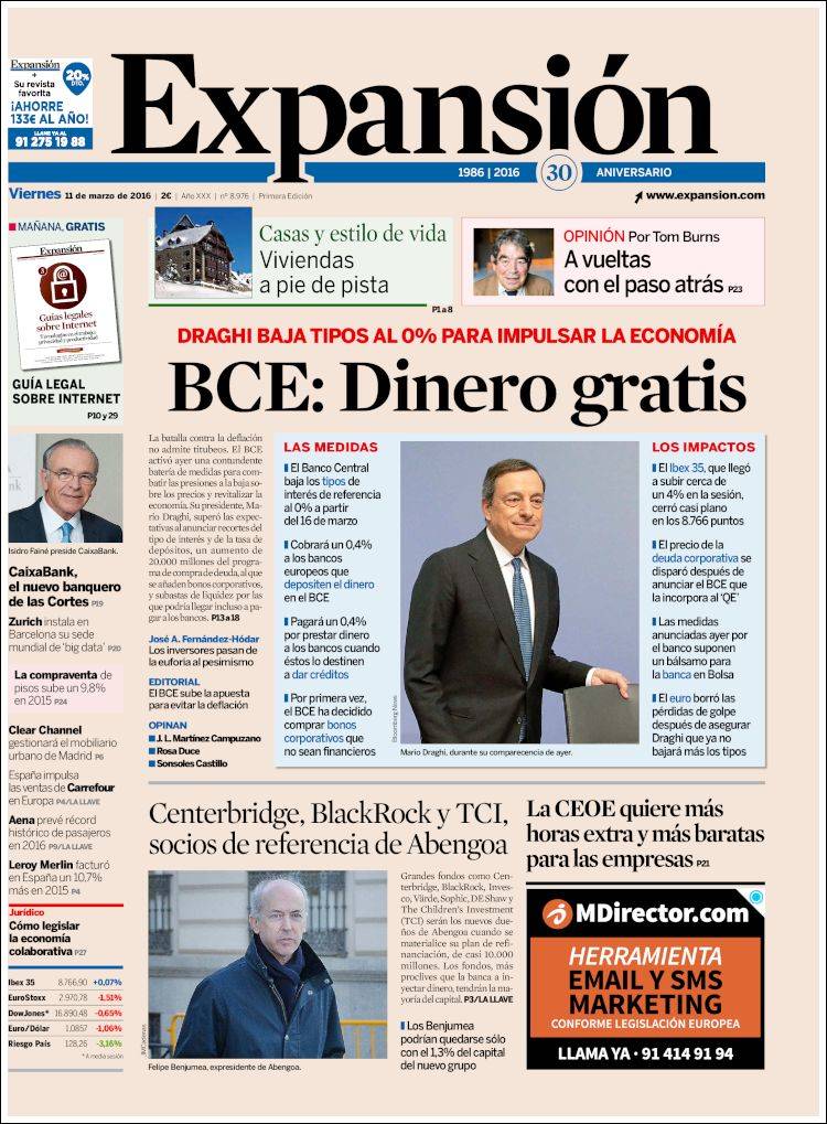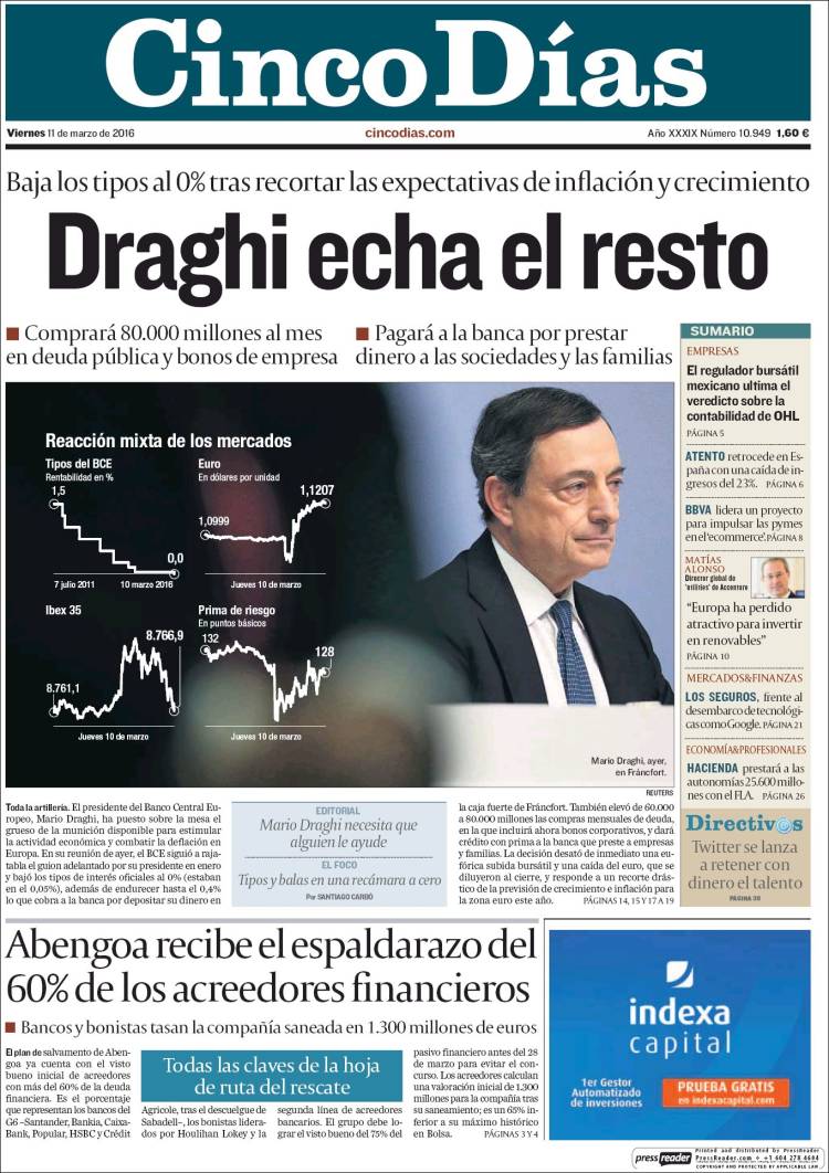 "El BCE rebaja el dinero al 0% ante el frenazo de la economía"