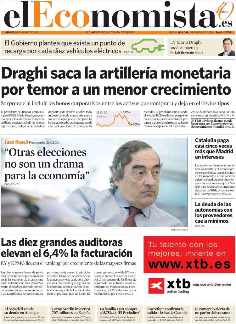 "Draghi saca la artillería monetaria por temor a un menor crecimiento"