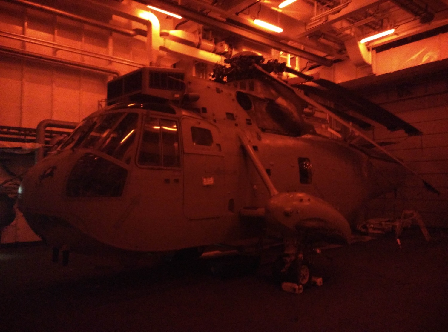 El hangar del Cantabria guarda en su interior un helicóptero Sikorsky SH-3 Sea King.