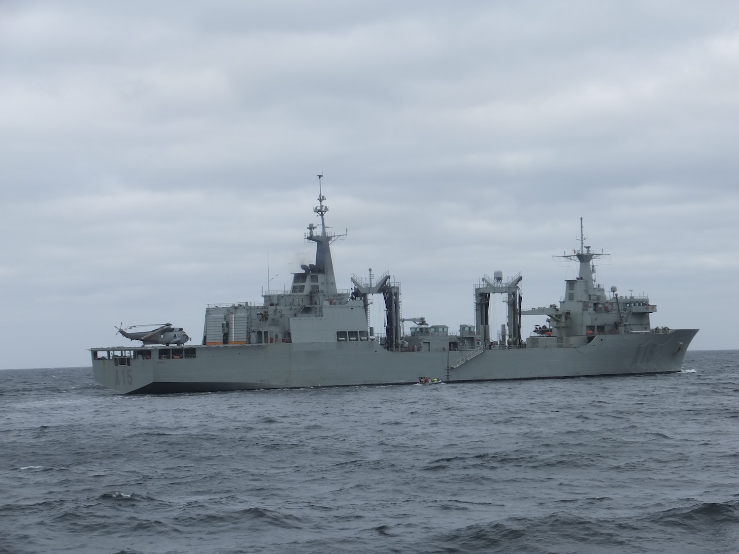 El Buque de Aprovisionamiento de Combate (BAC) Cantabria, navegando en aguas del Mar Báltico.