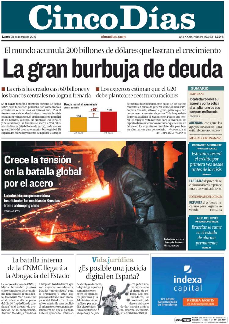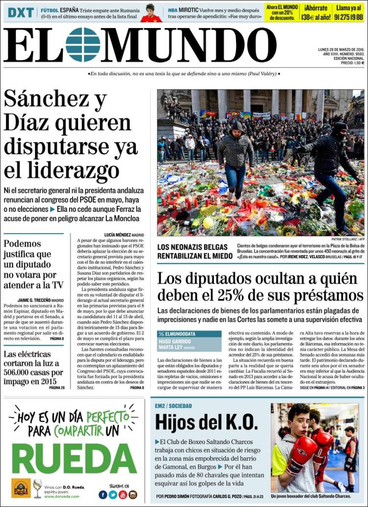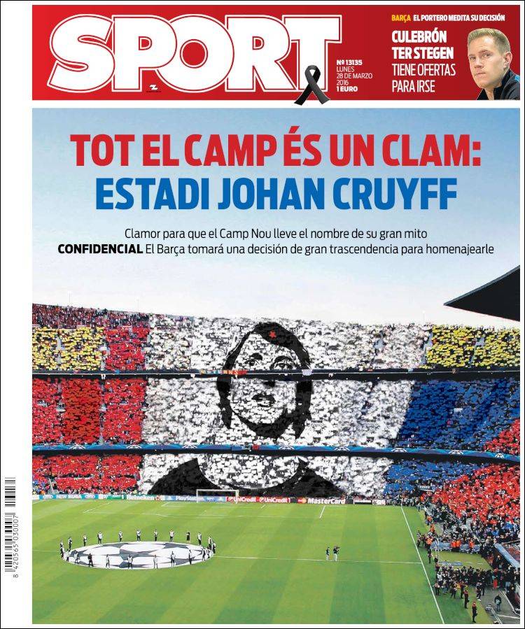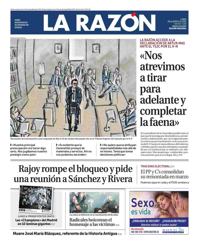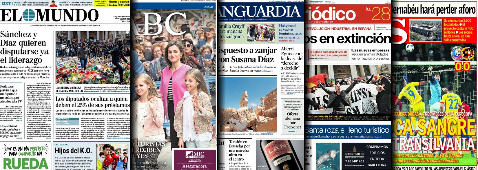 Portadas de los diarios El Mundo, El País, ABC, La Razón, La Vanguardia, El Periódico, Cinco Días, Expansión, Marca, As, Mundo Deportivo y Sport.
