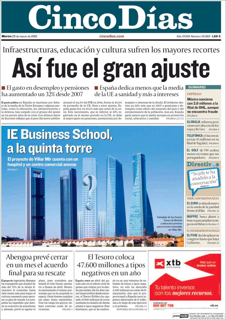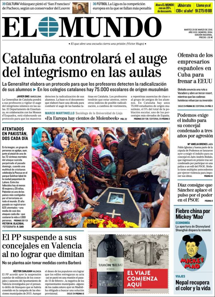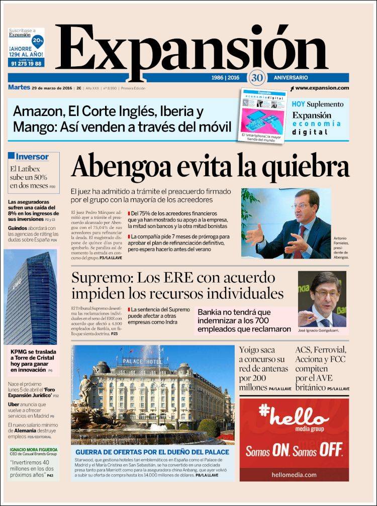 Portadas de los diarios El Mundo, El País, ABC, La Razón, La Vanguardia, El Periódico, Cinco Días, El Economista, Expansión, Marca, As, Mundo Deportivo y Sport.