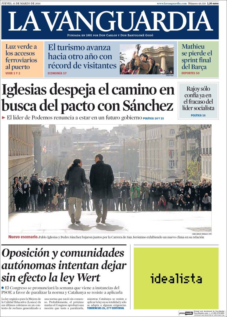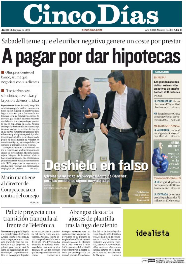 "Ciudadanos enfría el optimismo de Sánchez e Iglesias sobre un pacto de gobierno"