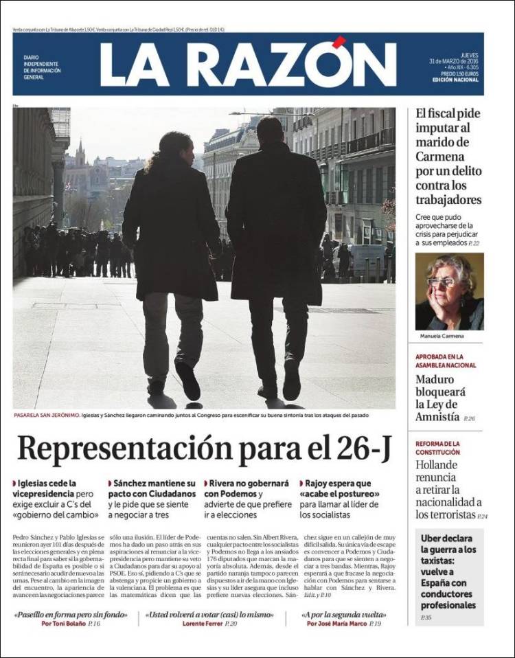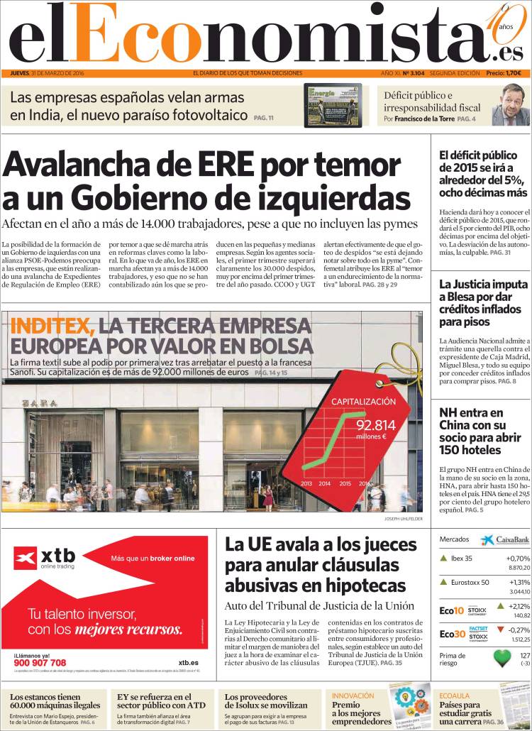 Portadas de los diarios El Mundo, El País, ABC, La Razón, La Vanguardia, El Periódico, Cinco Días, El Economista, Expansión, Marca, As, Mundo Deportivo y Sport.