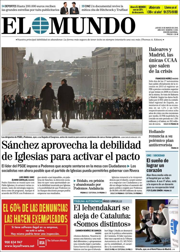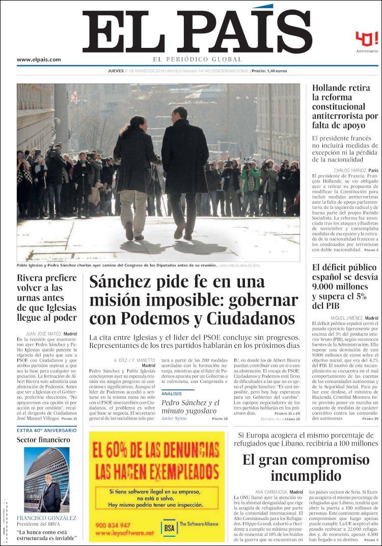 "Sánchez pide fe en una misión imposible: gobernar con Podemos y Ciudadanos"