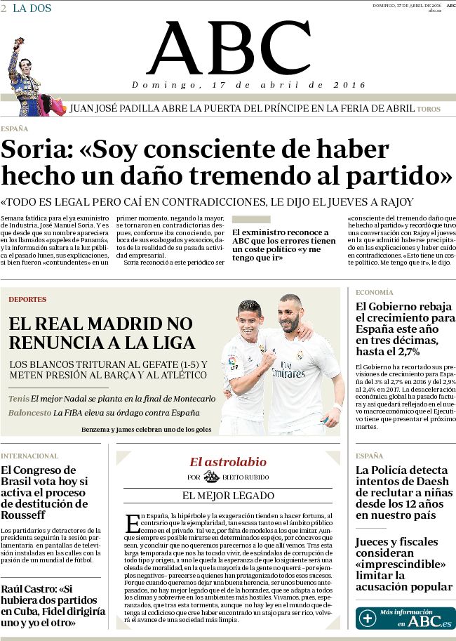 Devastación, cenizas y montes arrasados: así queda el país tras los incendios Paula Gil Las fotos del Comité Federal del PSOE: sonrisas, caras largas y los últimos forofos de Sánchez M. R. M. 0 comentarios VerOcultar todos los comentarios Secciones Portada Opinión España Andalucía Madrid Canarias Valencia Internacional Defensa Corazón Viajar y Comer Deportes Sucesos Cultura Libros Cine Series Tecnociencia Salud Vídeos Fotos Canales Servicios Me lo compro Yo quiero uno Tráfico Precio gasolineras Radares El Tiempo Gestiona tu patrimonio Participación Móviles Boletines RSS Versión accesible Últimas noticias Archivo Hemeroteca Personajes Lugares Empresas Organismos Temas Eventos LD Redes Facebook X Instagram YouTube WhatsApp Telegram