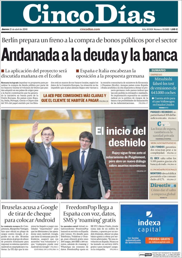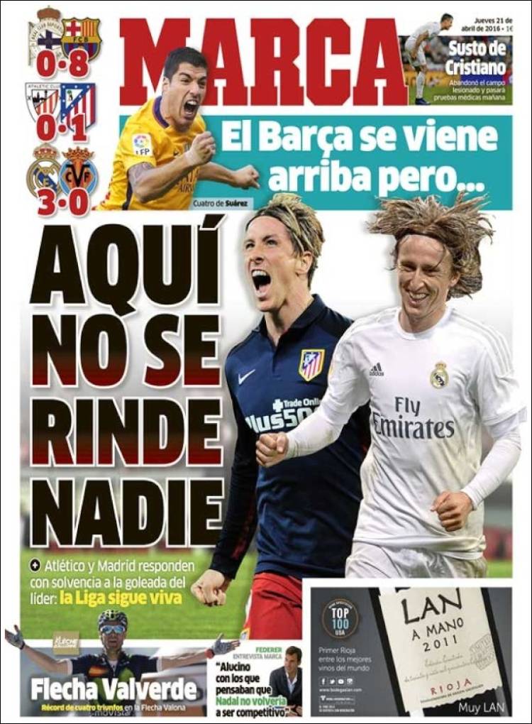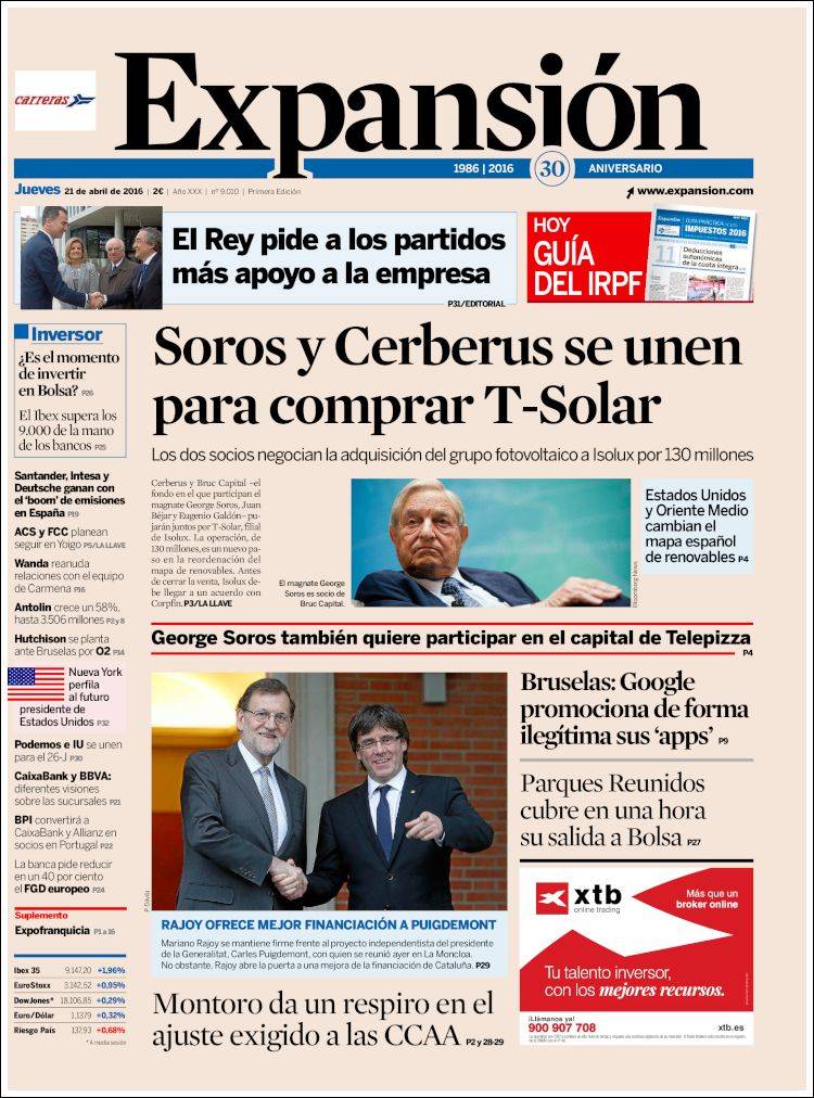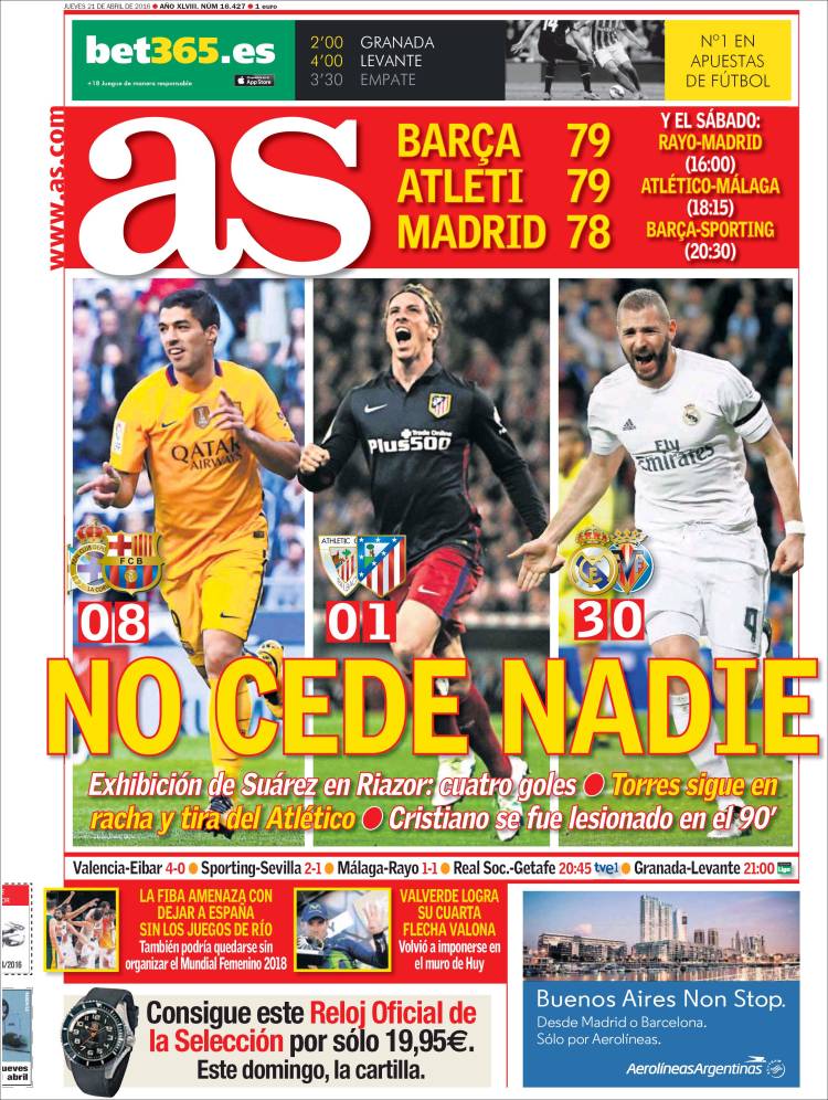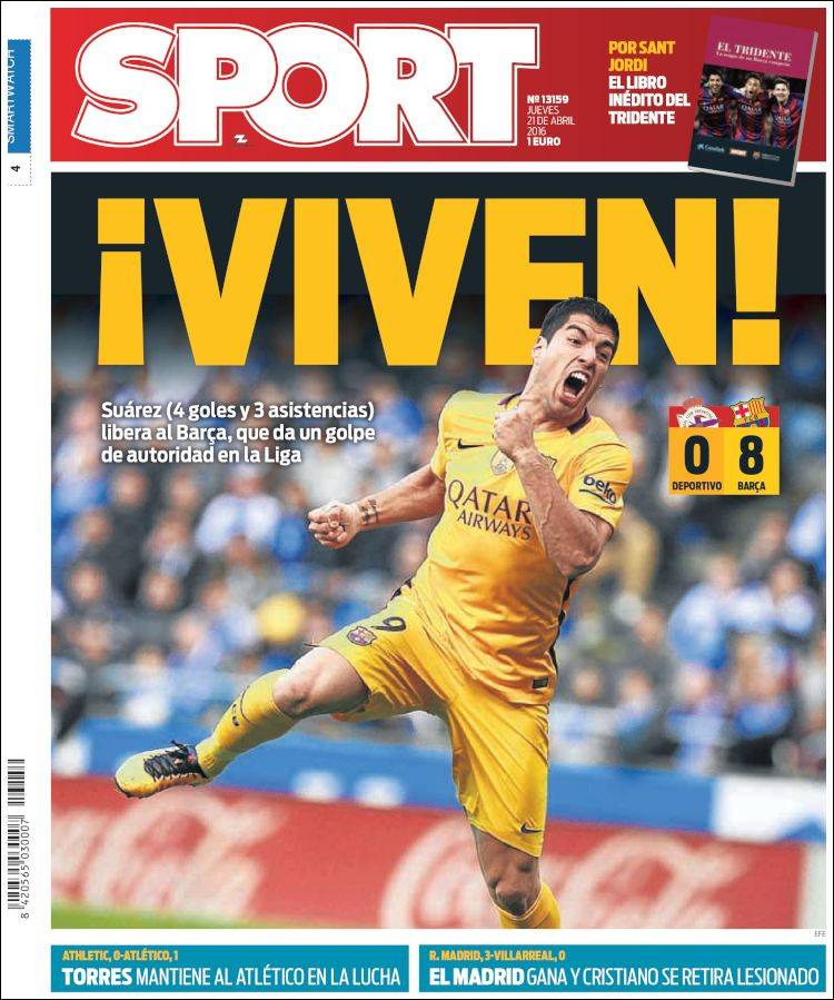 Portadas de los diarios El Mundo, El País, ABC, La Razón, La Vanguardia, El Periódico, Cinco Días, El Economista, Expansión, Marca, As, Mundo Deportivo y Sport.