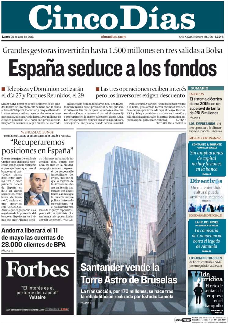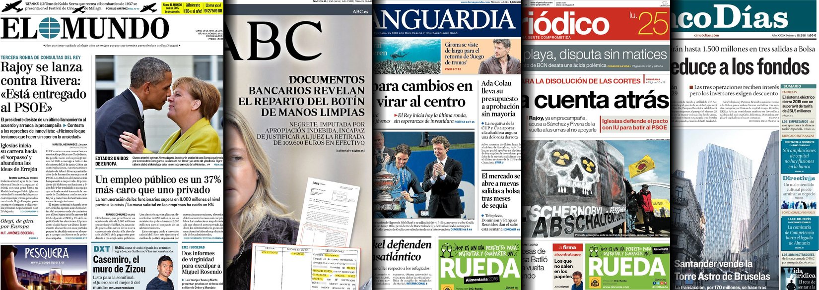 Portadas de los diarios ABC, As, Cinco Días, El Periódico y La Vanguardia.