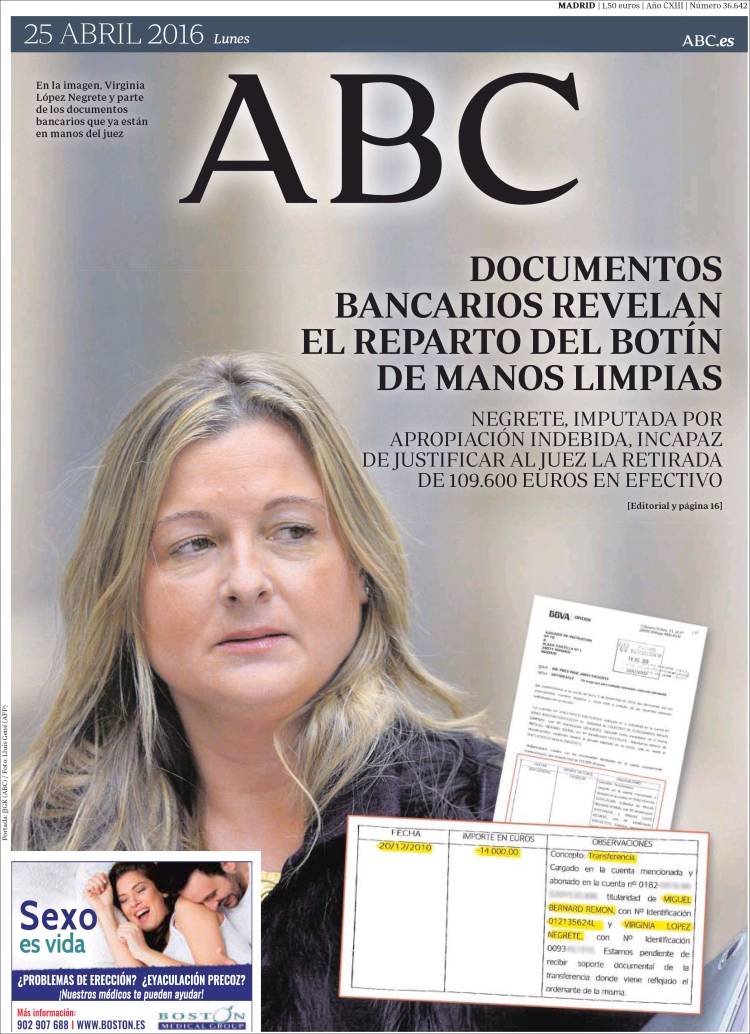 "Documentos bancarios revelan el reparto del botín de Manos Limpias"
