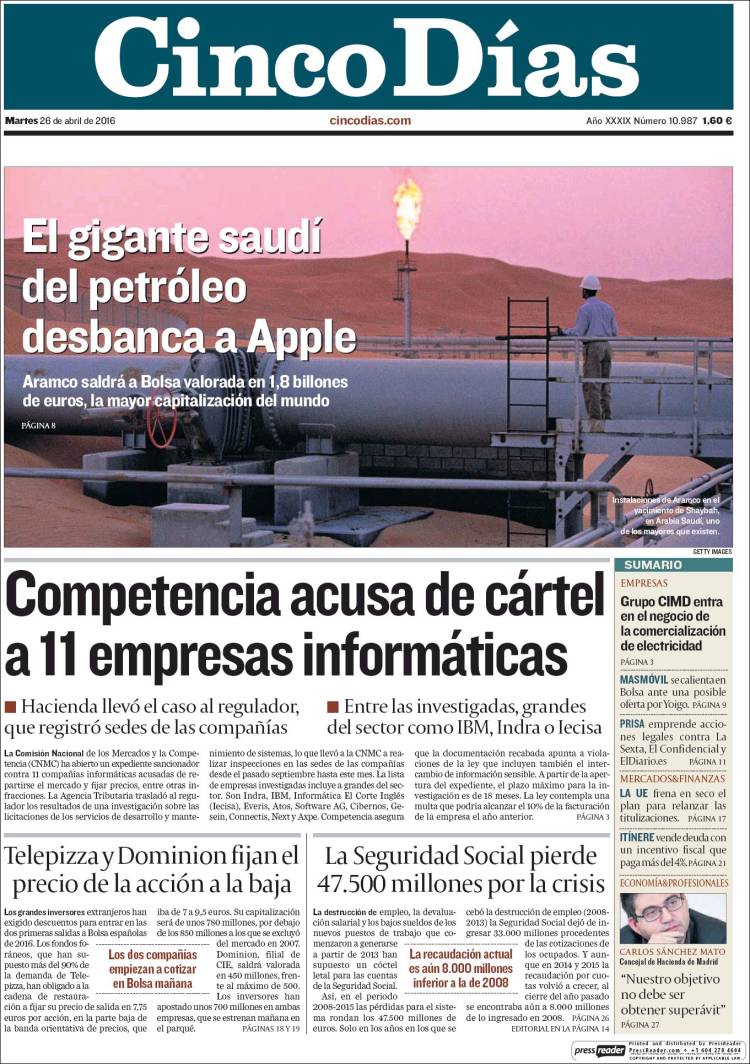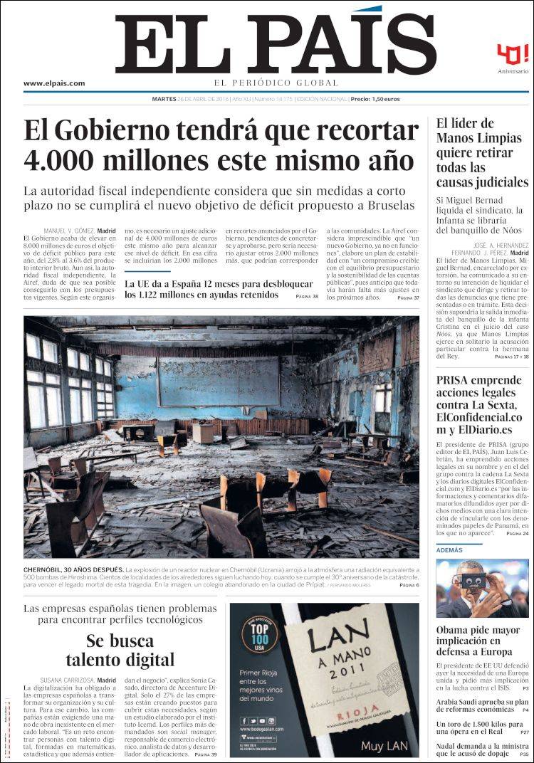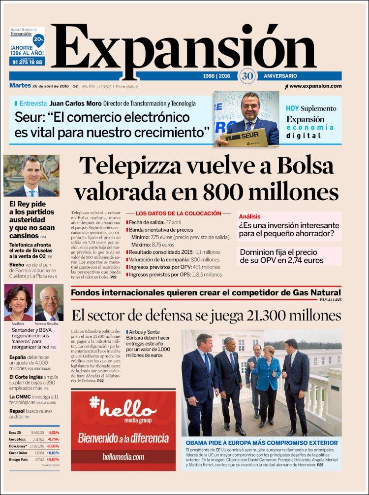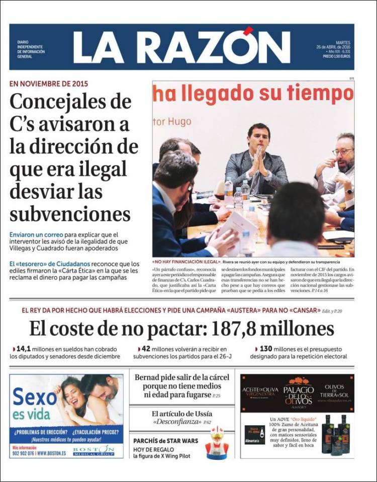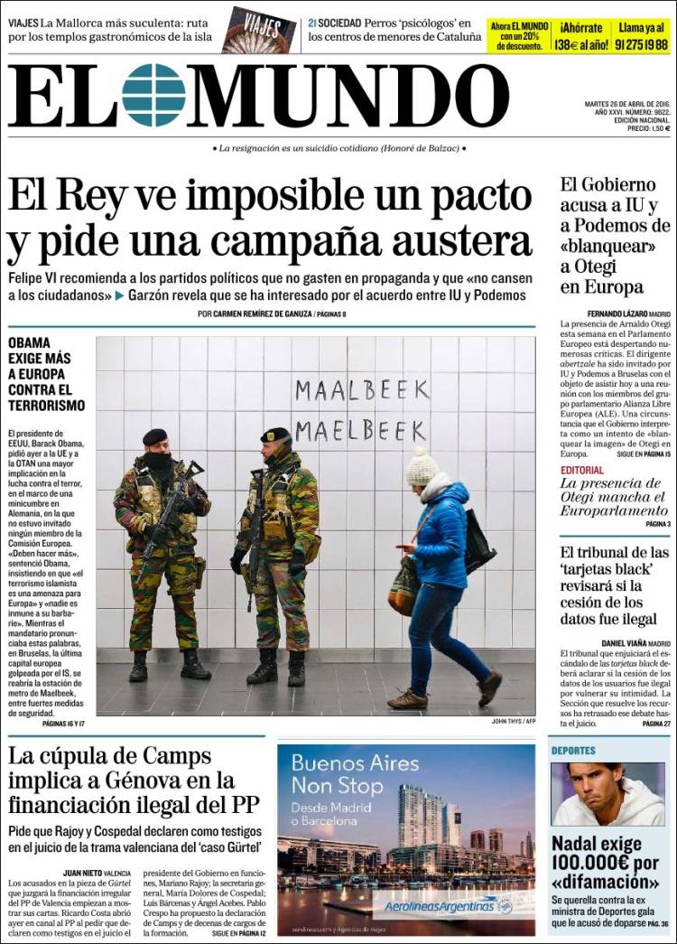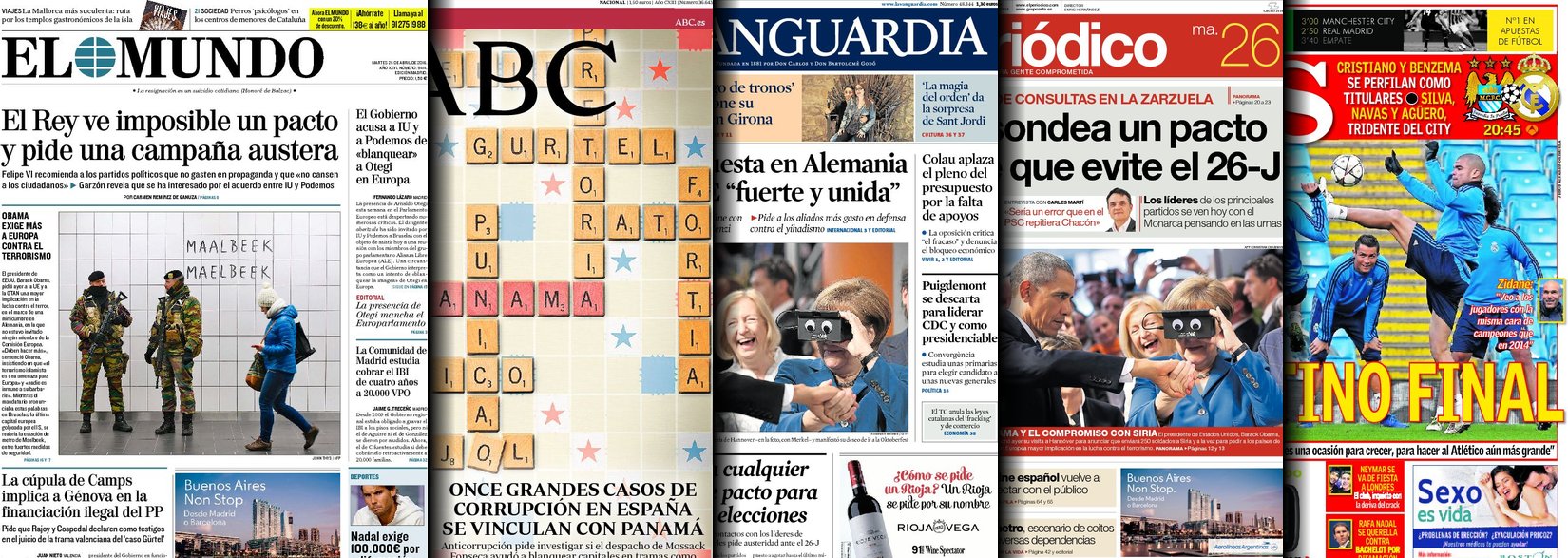 Portadas de los diarios El Mundo, El País, ABC, La Razón, La Vanguardia, El Periódico, Cinco Días, El Economista, Expansión, Marca, As, Mundo Deportivo y Sport.