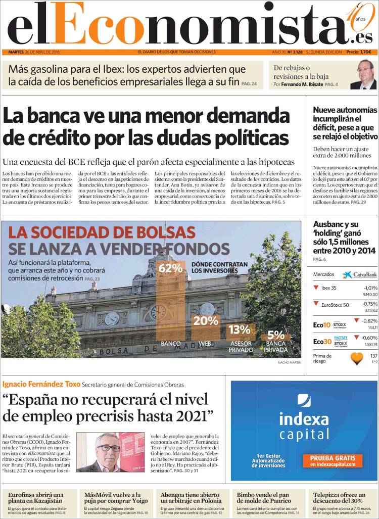 "La banca ve una menor demanda de crédito por las deudas políticas"