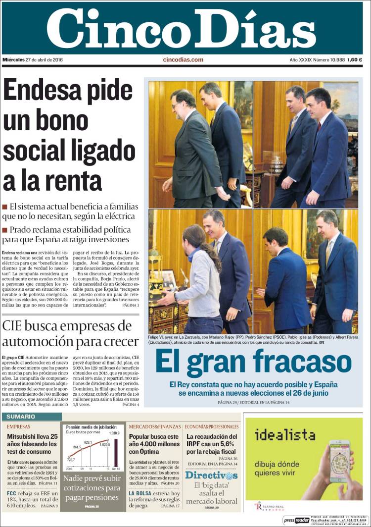 "El fracaso de los partidos aboca a una inédita repetición electoral"