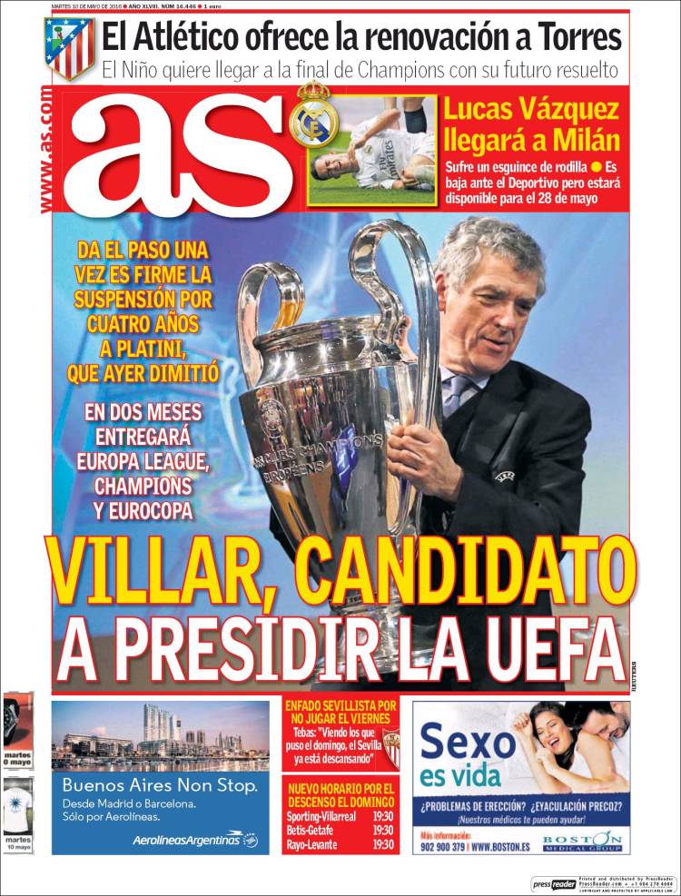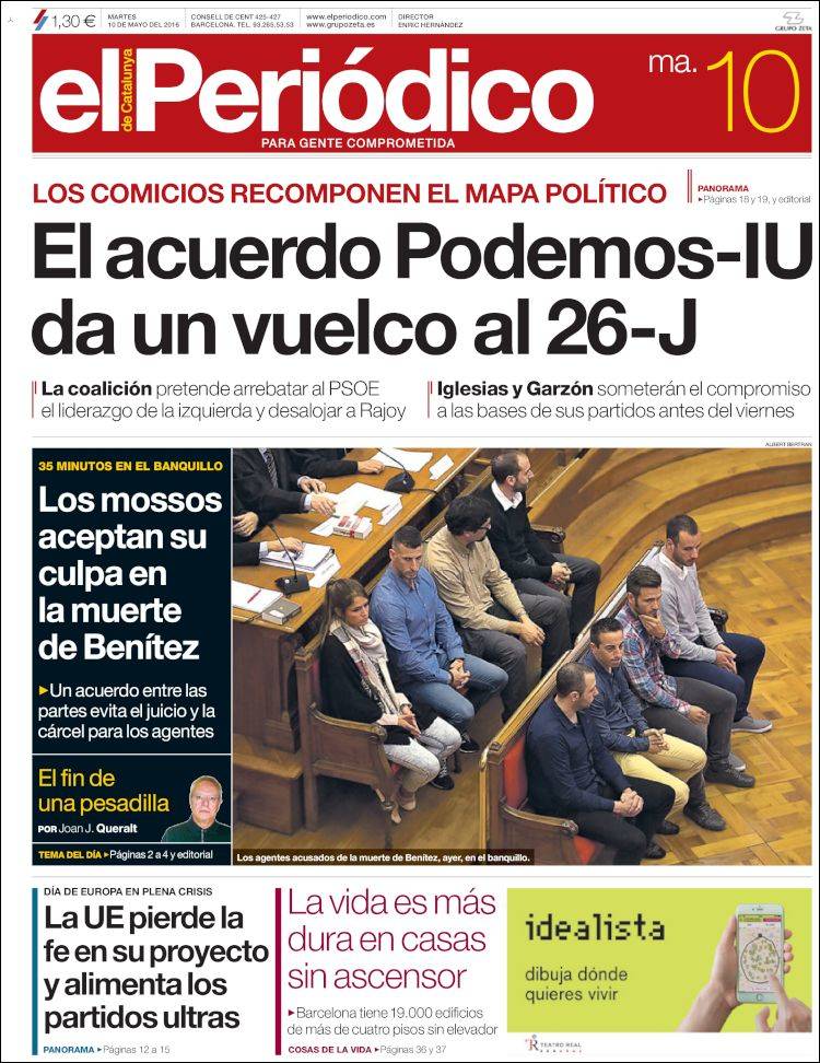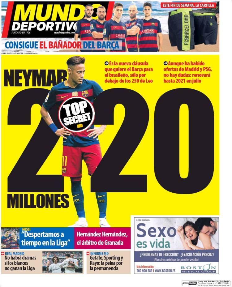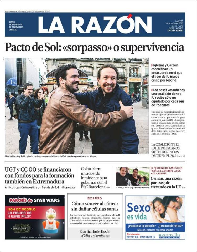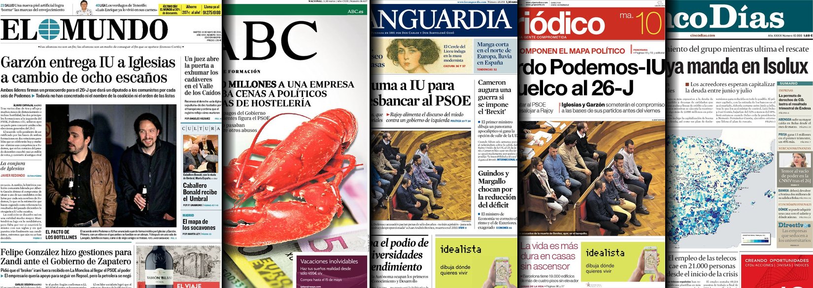 Portadas de los diarios El Mundo, El País, ABC, La Razón, La Vanguardia, El Periódico, Cinco Días, El Economista, Expansión, Marca, As, Mundo Deportivo y Sport.