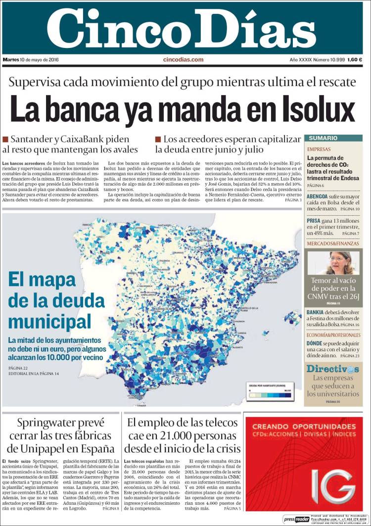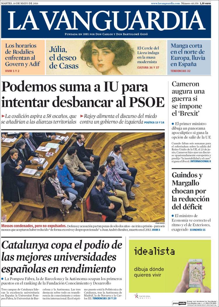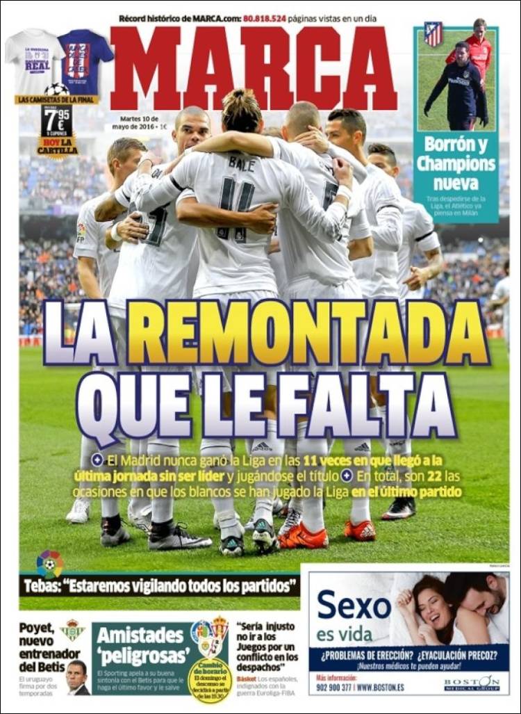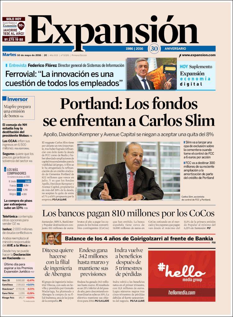 Portadas de los diarios El Mundo, El País, ABC, La Razón, La Vanguardia, El Periódico, Cinco Días, El Economista, Expansión, Marca, As, Mundo Deportivo y Sport.