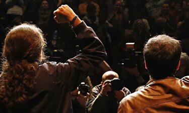 Iglesias y Garzón celebran el acuerdo con el viejo gesto comunista | EFE