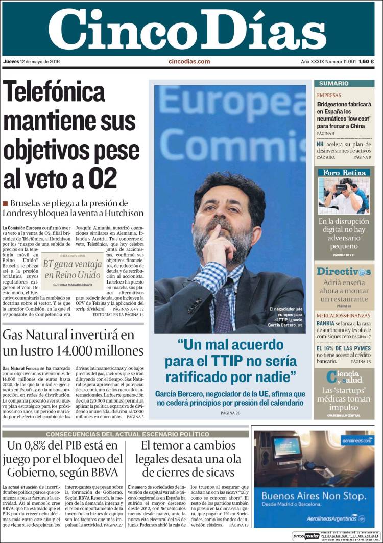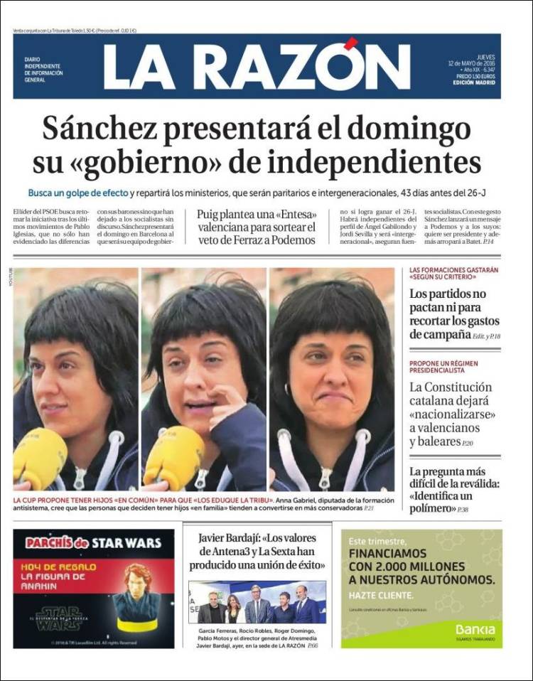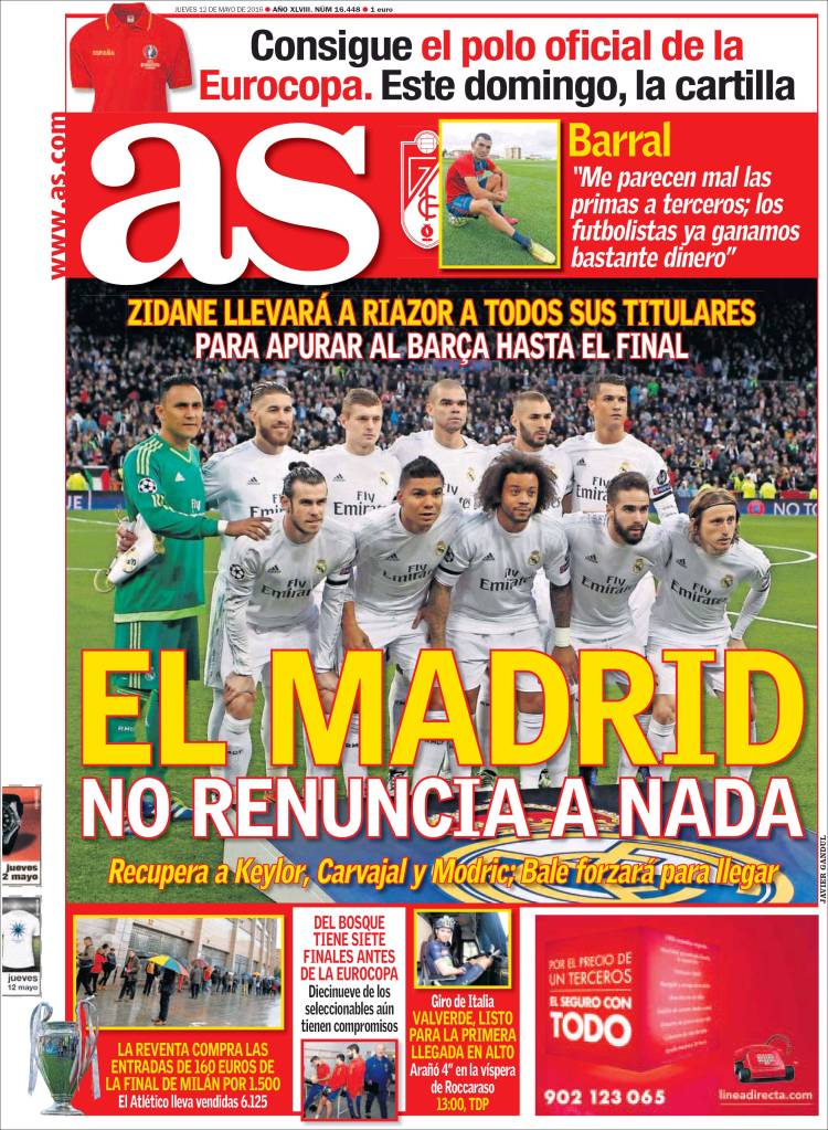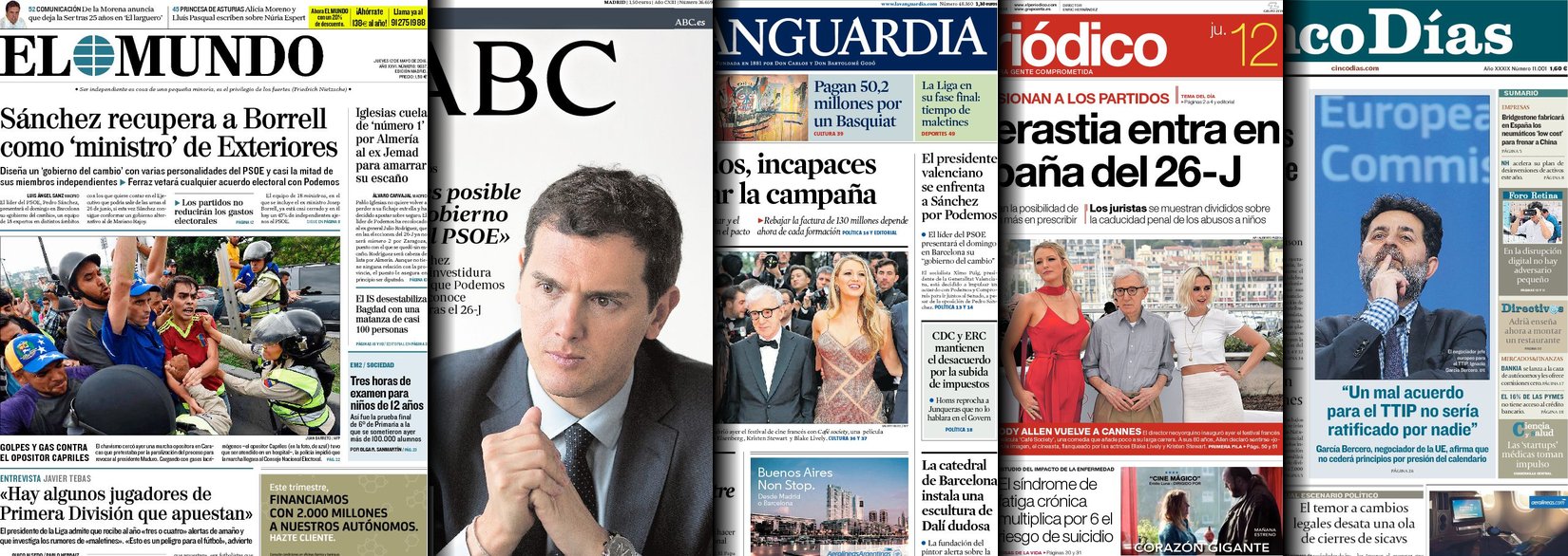 Portadas de los diarios El Mundo, El País, ABC, La Razón, La Vanguardia, El Periódico, Cinco Días, El Economista, Expansión, Marca, As, Mundo Deportivo y Sport.