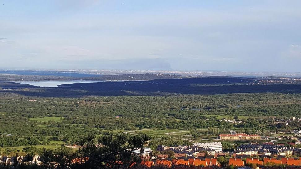 Un día después de que se desatara, el fuego seguía siendo visible a enormes distancias. La foto refleja el humo visto desde El Escorial, al norte de la Comunidad de Madrid.