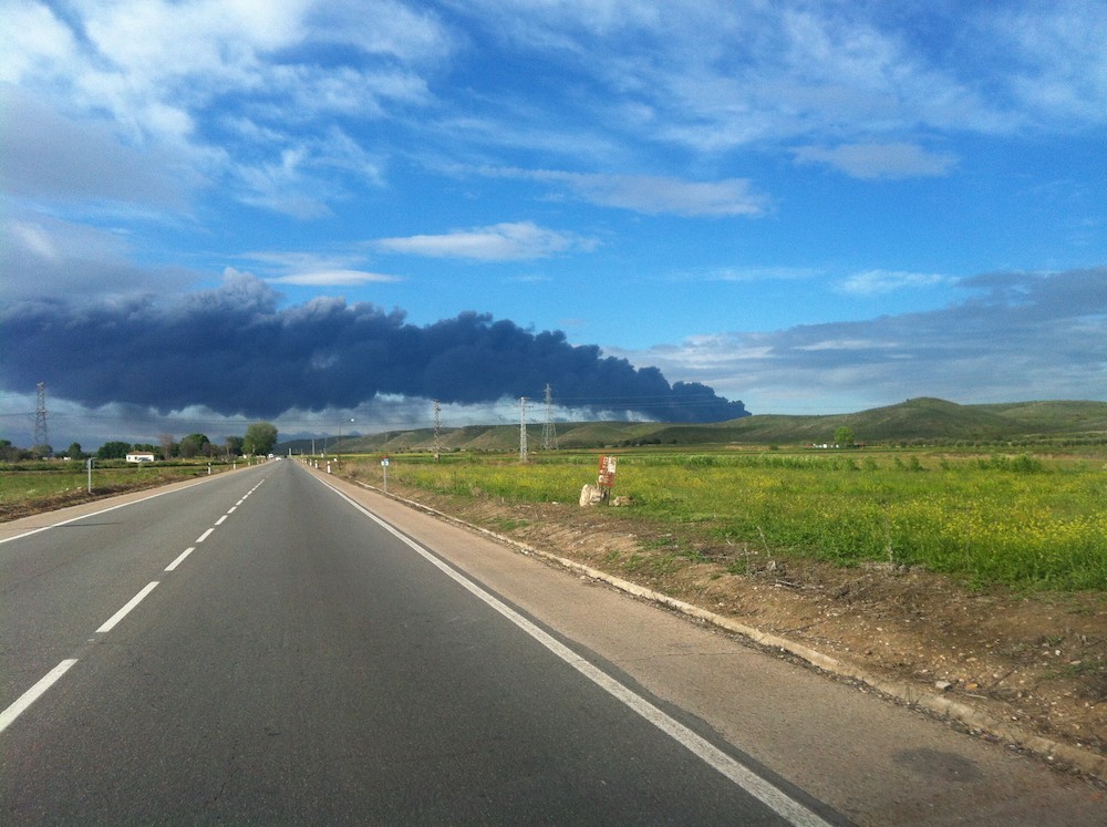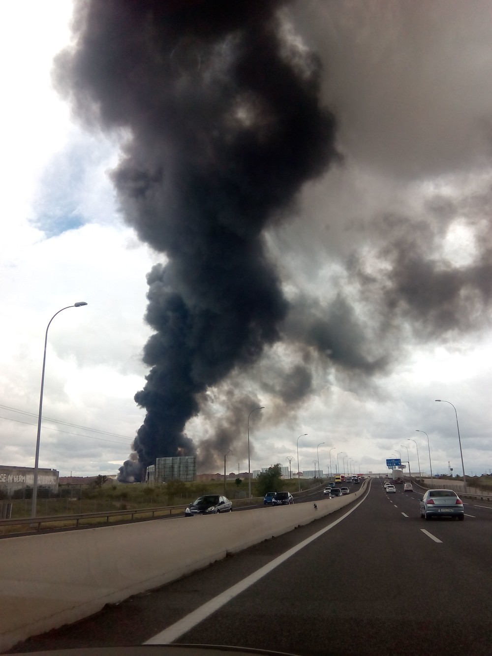 La radial 4 tuvo que ser cortada en los primeros momentos. Desde otras carreteras también se aprecia aún la columna de humo.