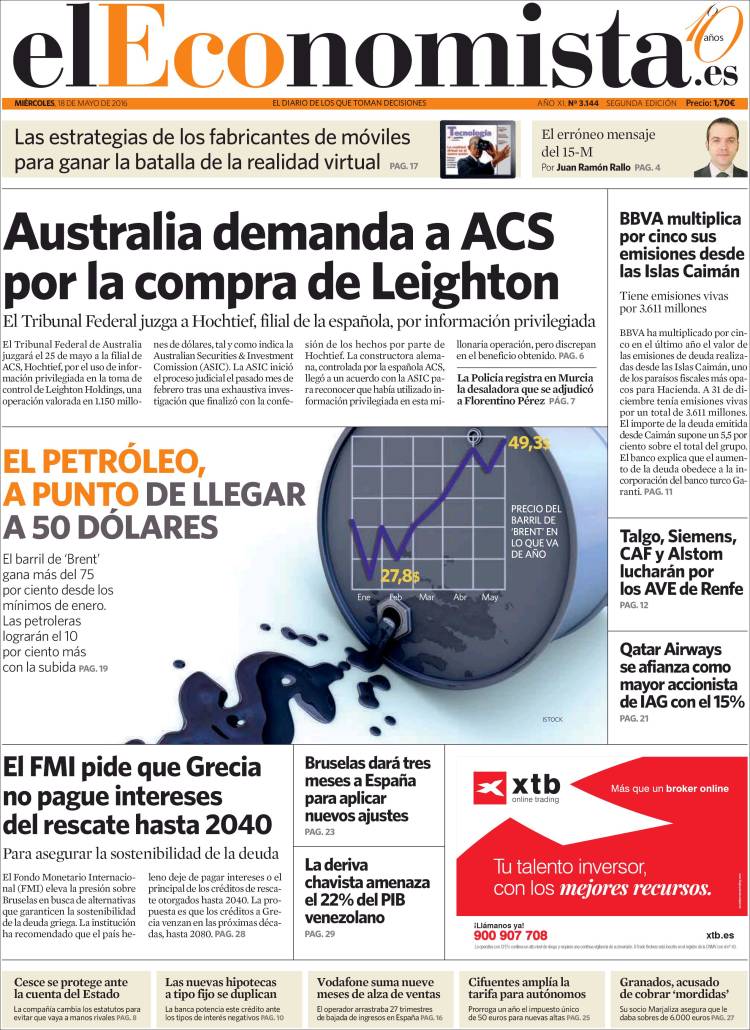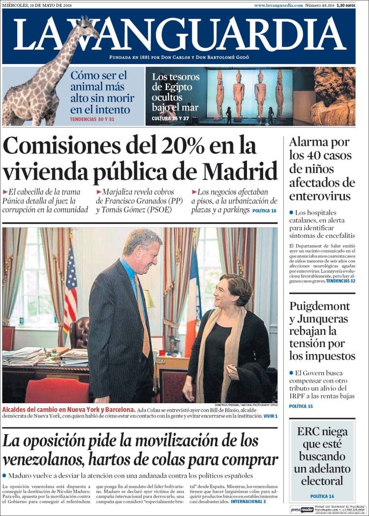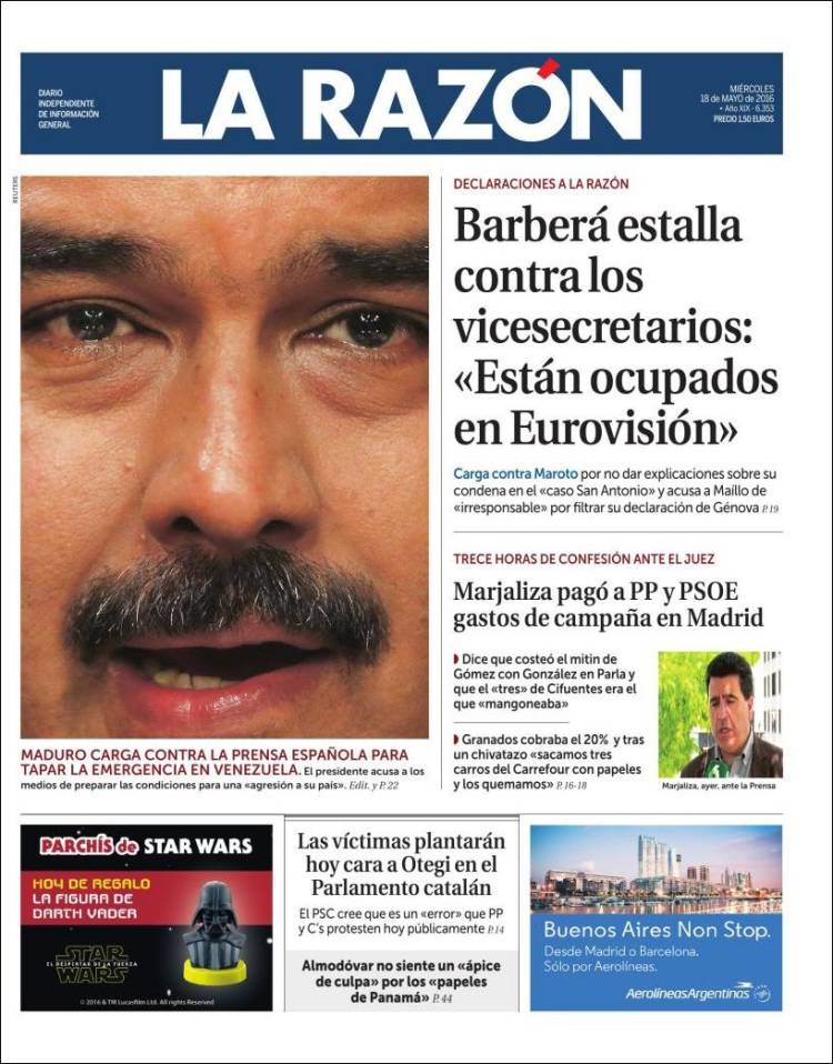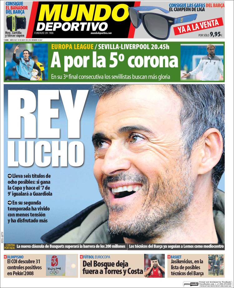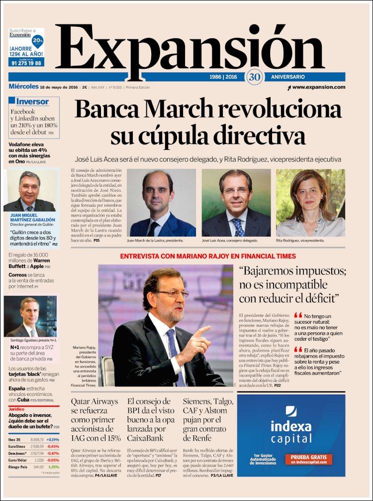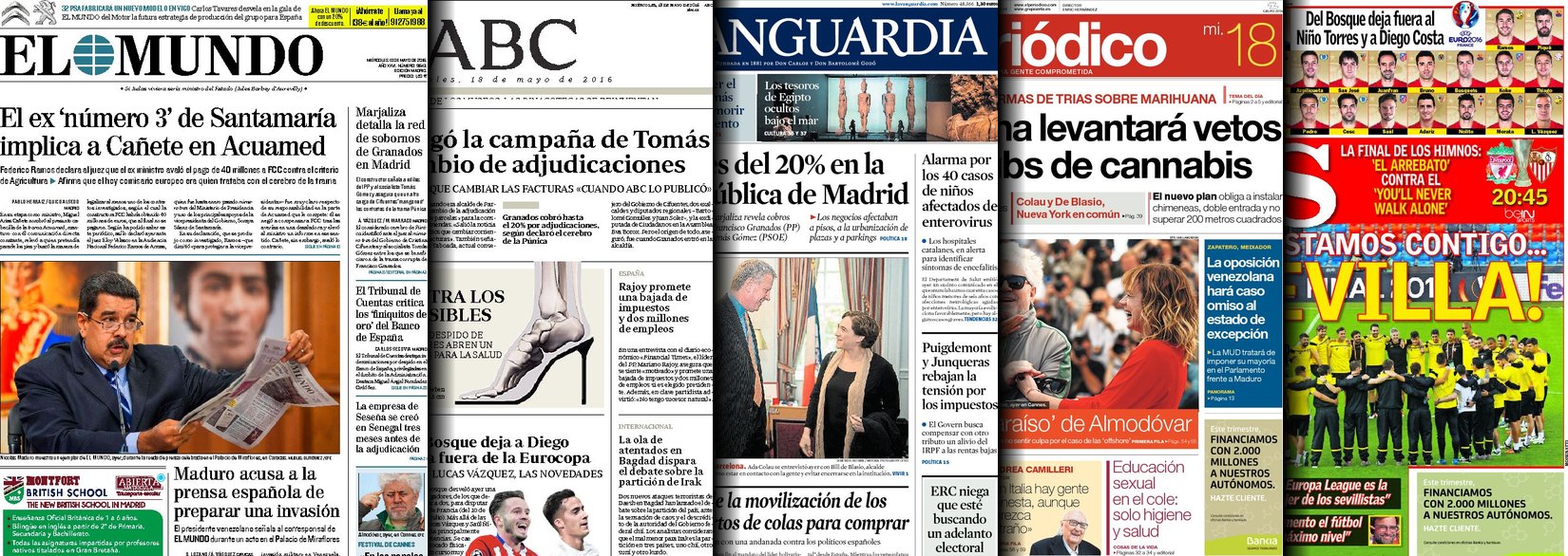 Portadas de los diarios El Mundo, El País, ABC, La Razón, La Vanguardia, El Periódico, Cinco Días, El Economista, Expansión, As, Mundo Deportivo y Sport.
