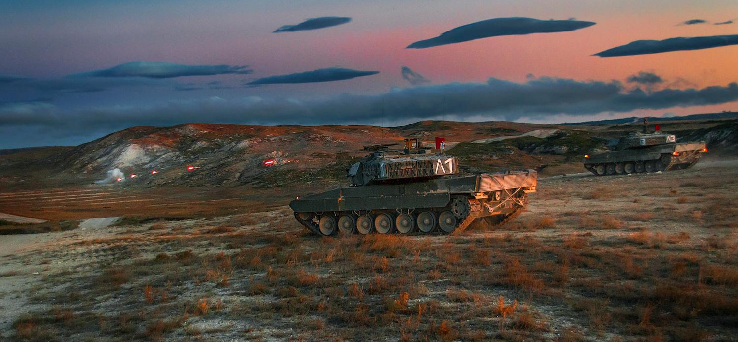 Los tanques Leopardo 2E del Ejército de Tierra en plenas maniobras.