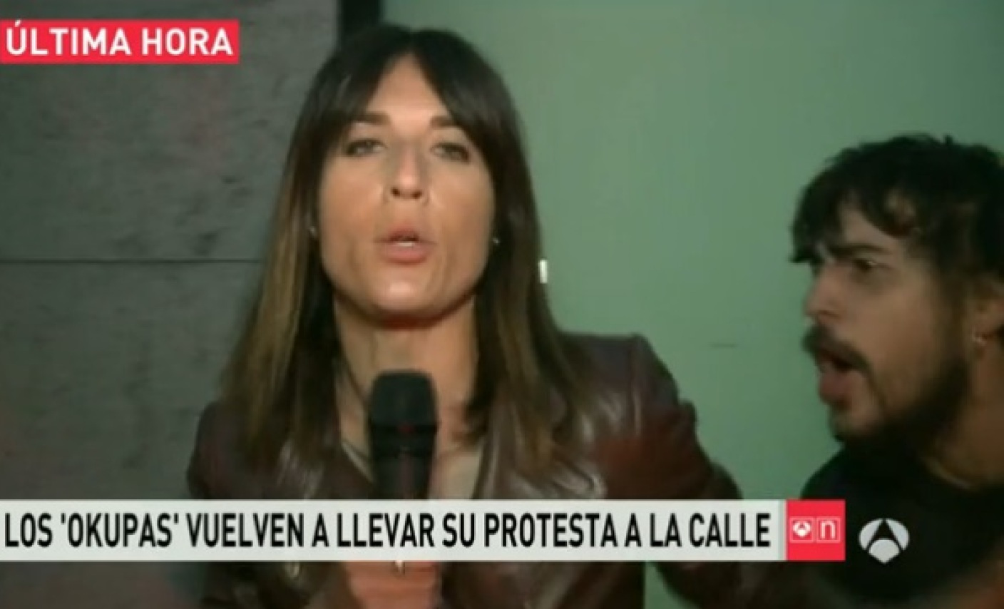 Durante una conexión en directo, un okupa intentó interrumpir a la periodista alabando la existencia de disturbios y llamado terroristas a los medios.