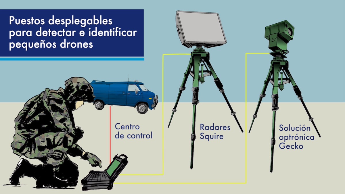 Infografía animada de cómo el radar Gecko es capaz de detectar pequeños drones.