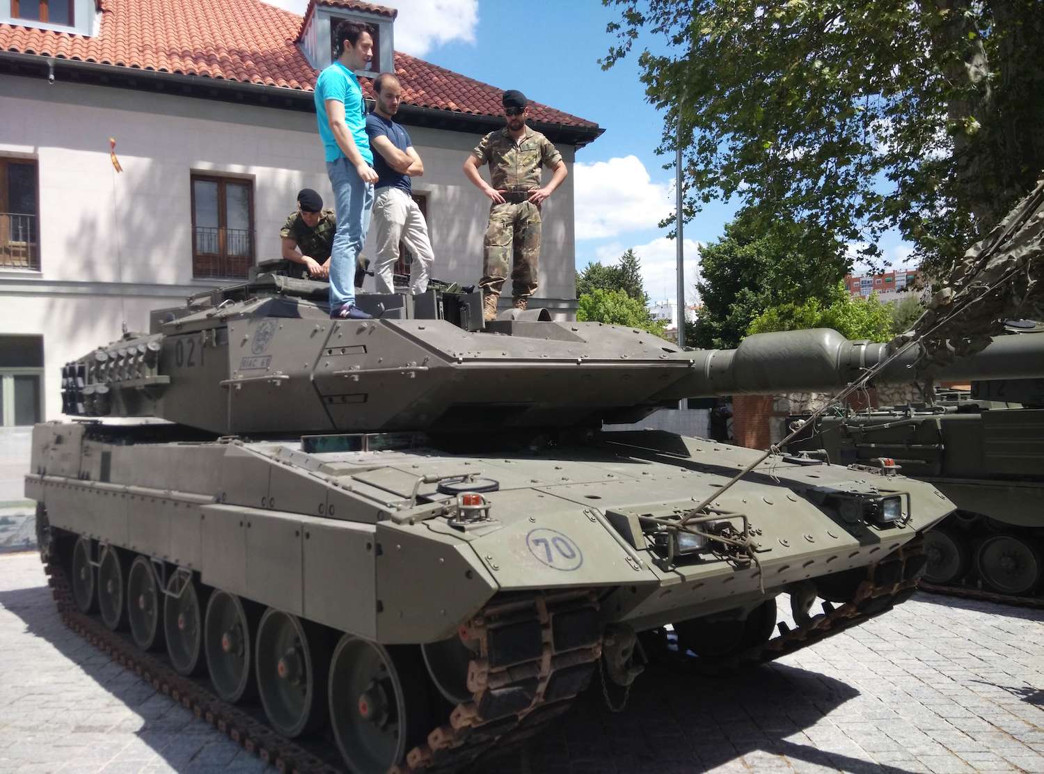 vehículo de infantería Pizarro (derecha), carro de combate Leopardo 2E (centro); y vehículo de reconocimiento de combate Centauro (izquierda).