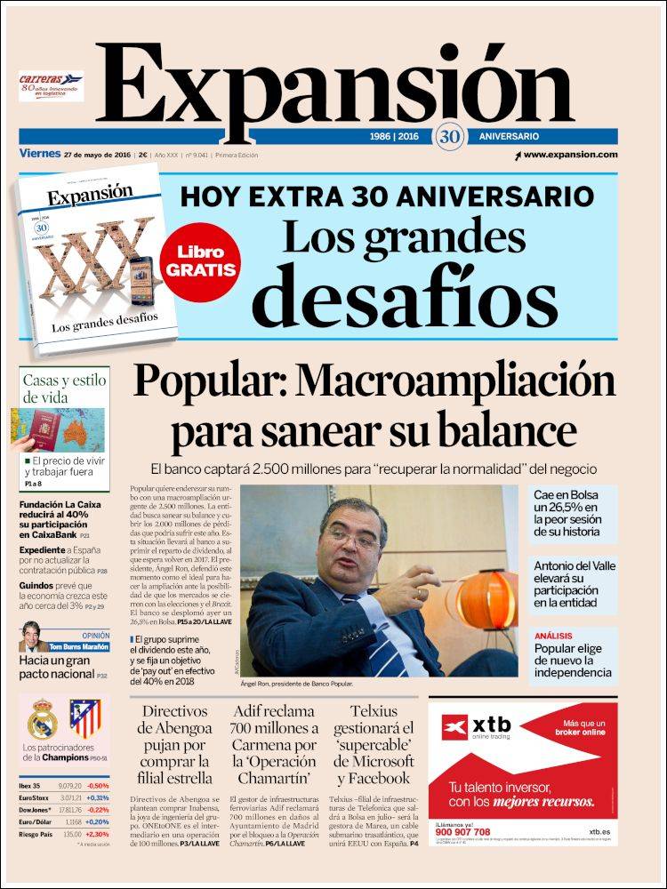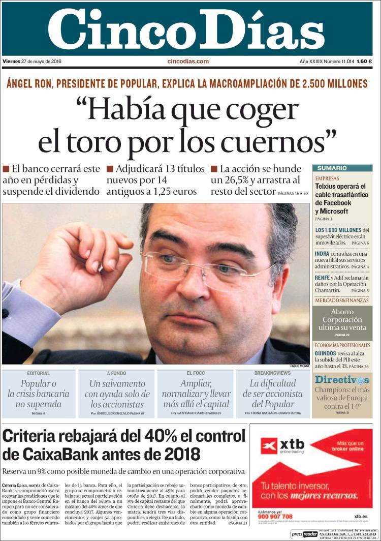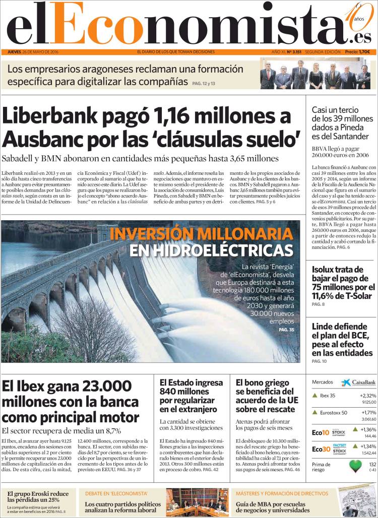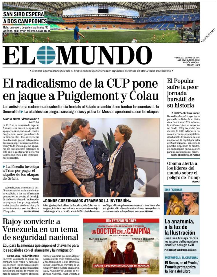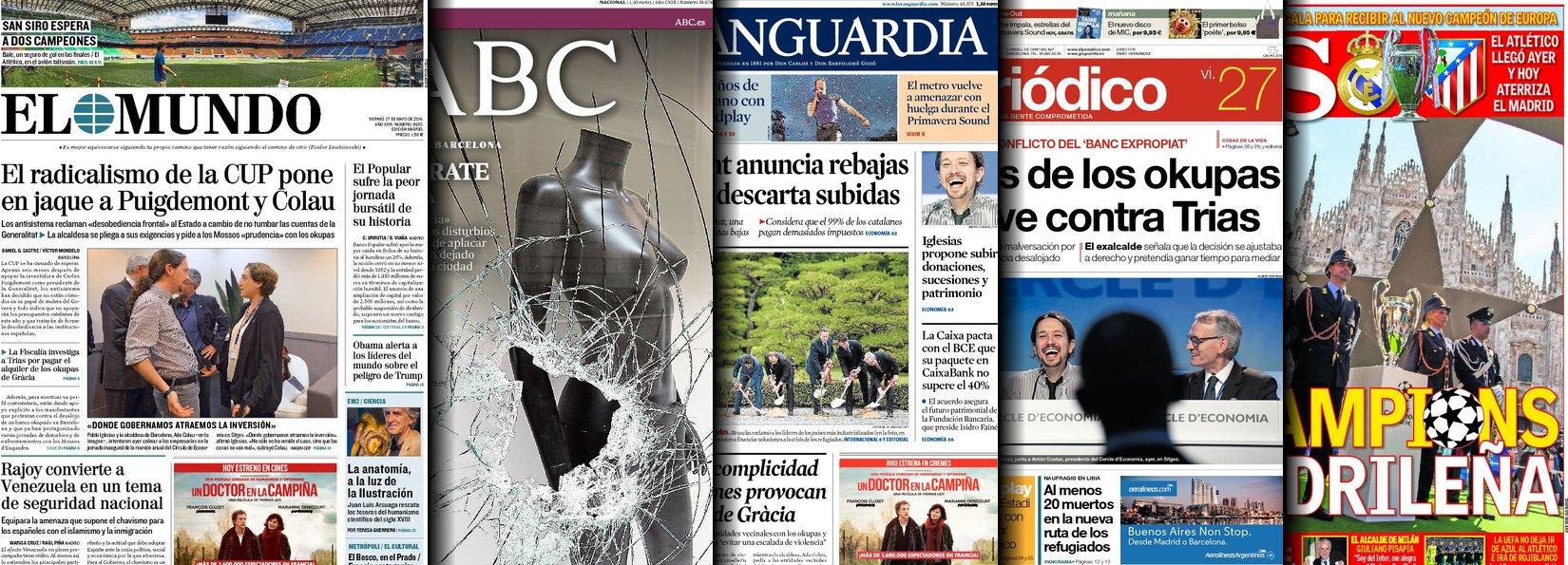 Portadas de los diarios El Mundo, El País, ABC, La Razón, La Vanguardia, El Periódico, Cinco Días, El Economista, Expansión, Marca, As, Mundo Deportivo y Sport.