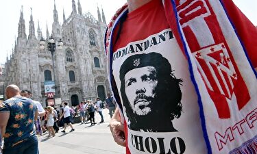 Un aficionado en Milán con una camiseta del "Comandante Cholo" | EFE
