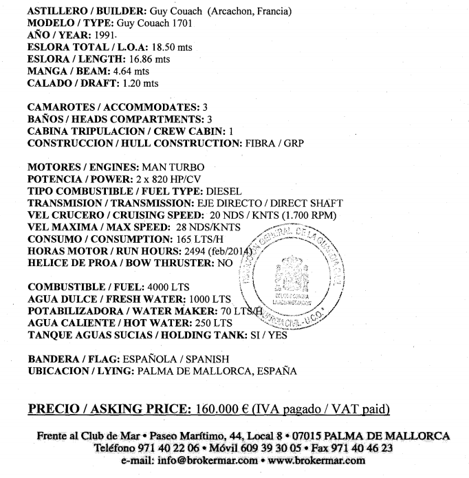Según un informe de la Guardia Civil que obra en el sumario de la Operación Púnica, Francisco Granados y David Marjaliza disfrutaron entre 2010 y 2014 del yate del consejero de OHL y yerno de Villar Mir. Los gastos habrían corrido a cuenta de los empresarios como prestación por favores políticos.