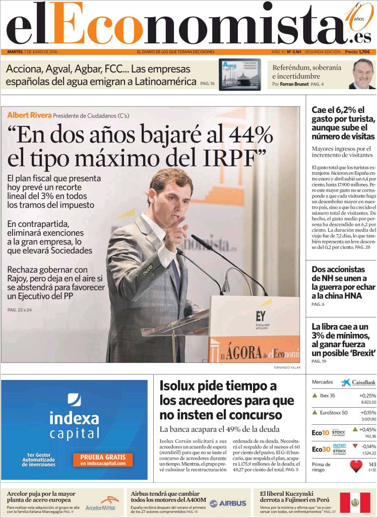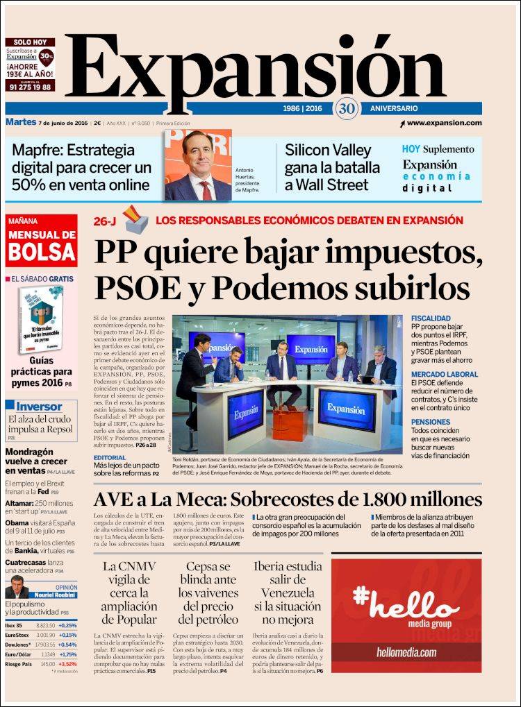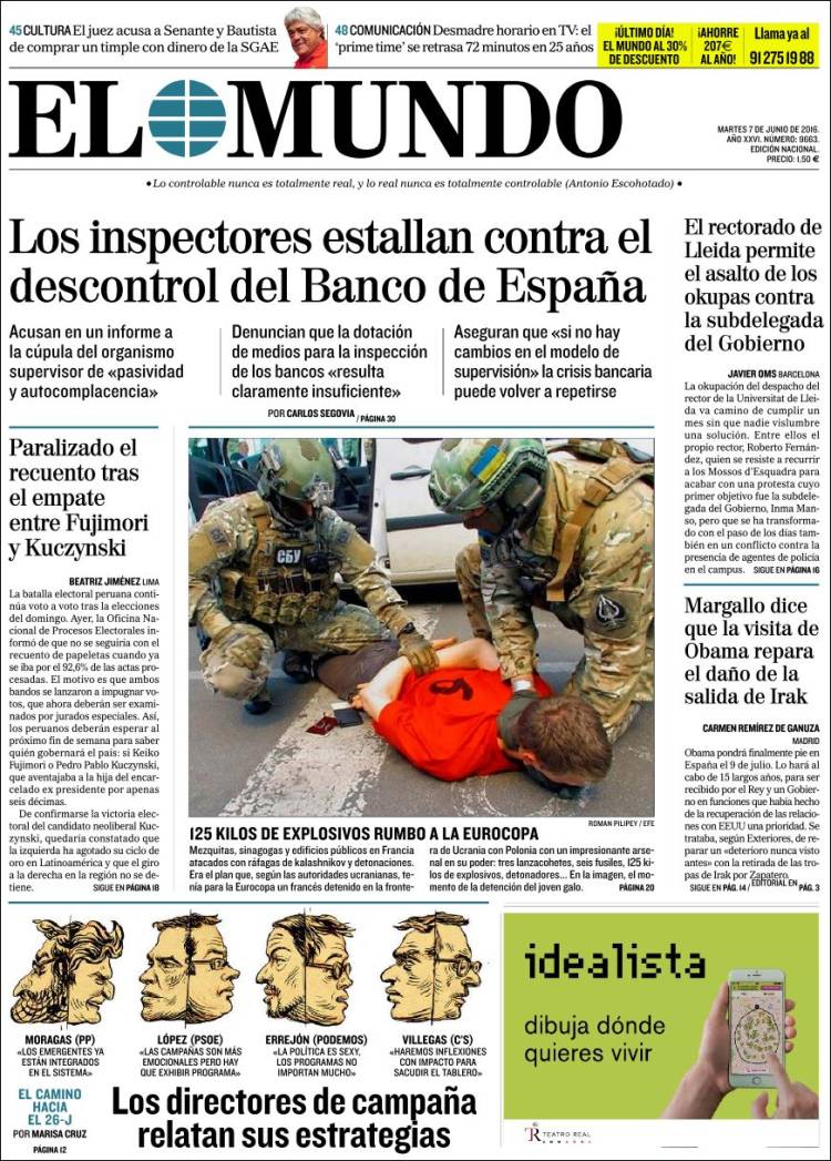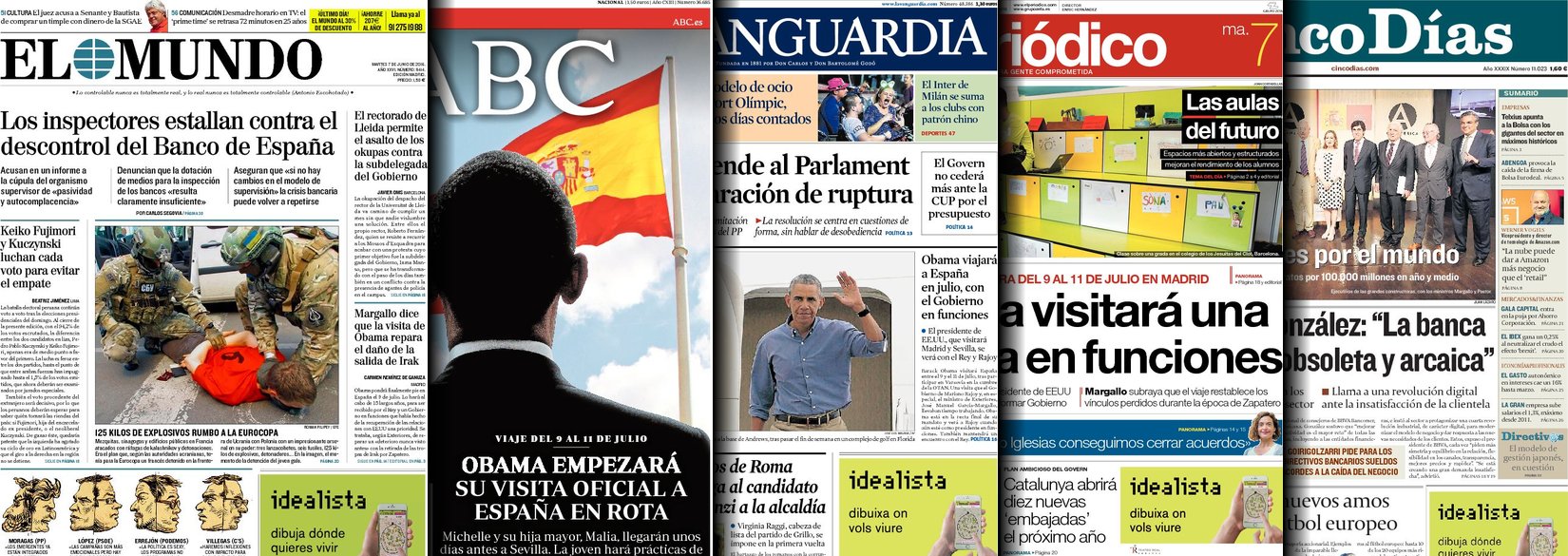 Portadas de los diarios El Mundo, El País, ABC, La Razón, La Vanguardia, El Periódico, Cinco Días, El Economista, Expansión, Marca, As, Mundo Deportivo y Sport.