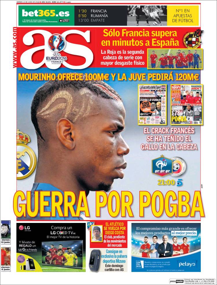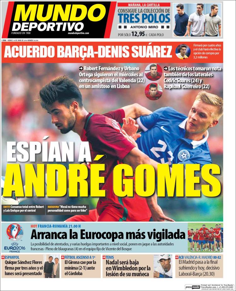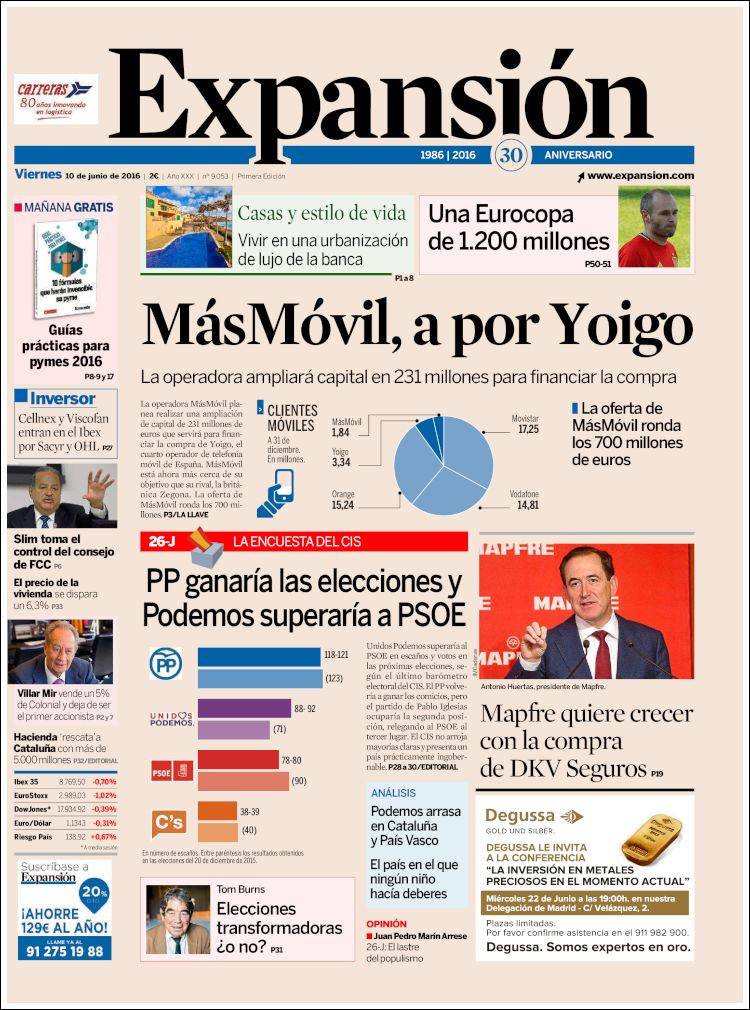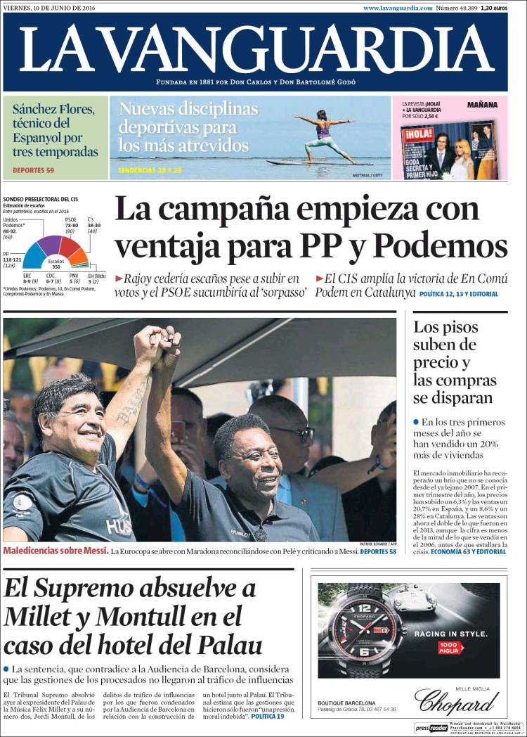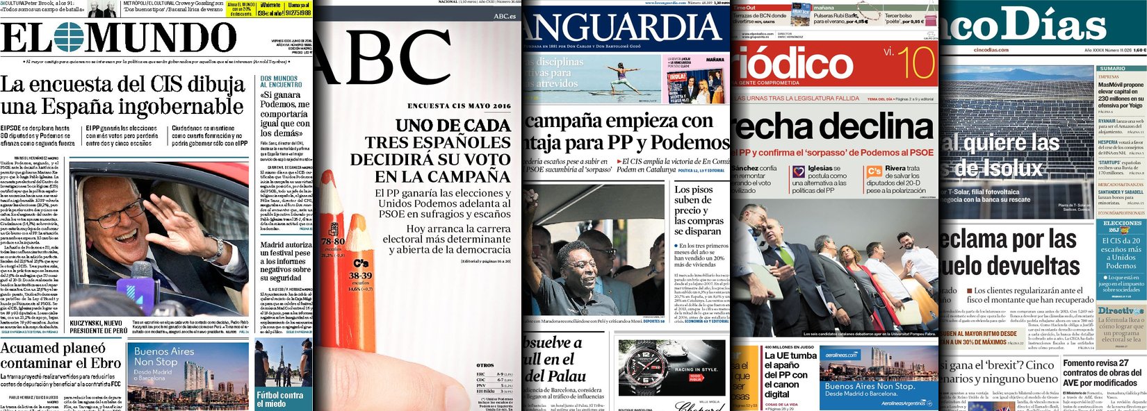 Portadas de los diarios El Mundo, El País, ABC, La Razón, La Vanguardia, El Periódico, Cinco Días, El Economista, Expansión, Marca, As, Mundo Deportivo y Sport.