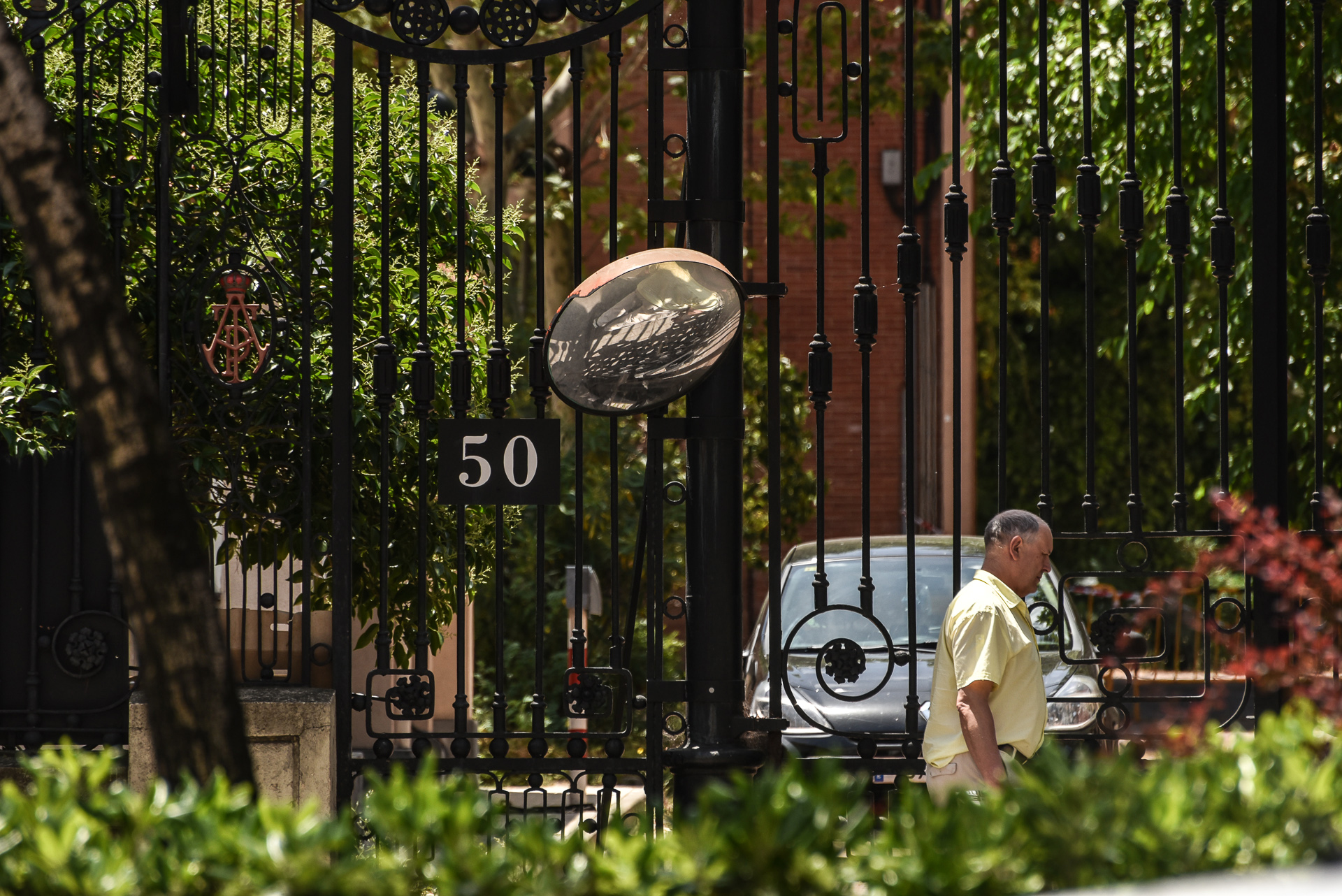 Una de las puertas protegidas por verjas y vigiladas por varias cámaras de seguridad que se encuentran en el solar de la calle Raimundo Fernández Villaverde 50, en Madrid.