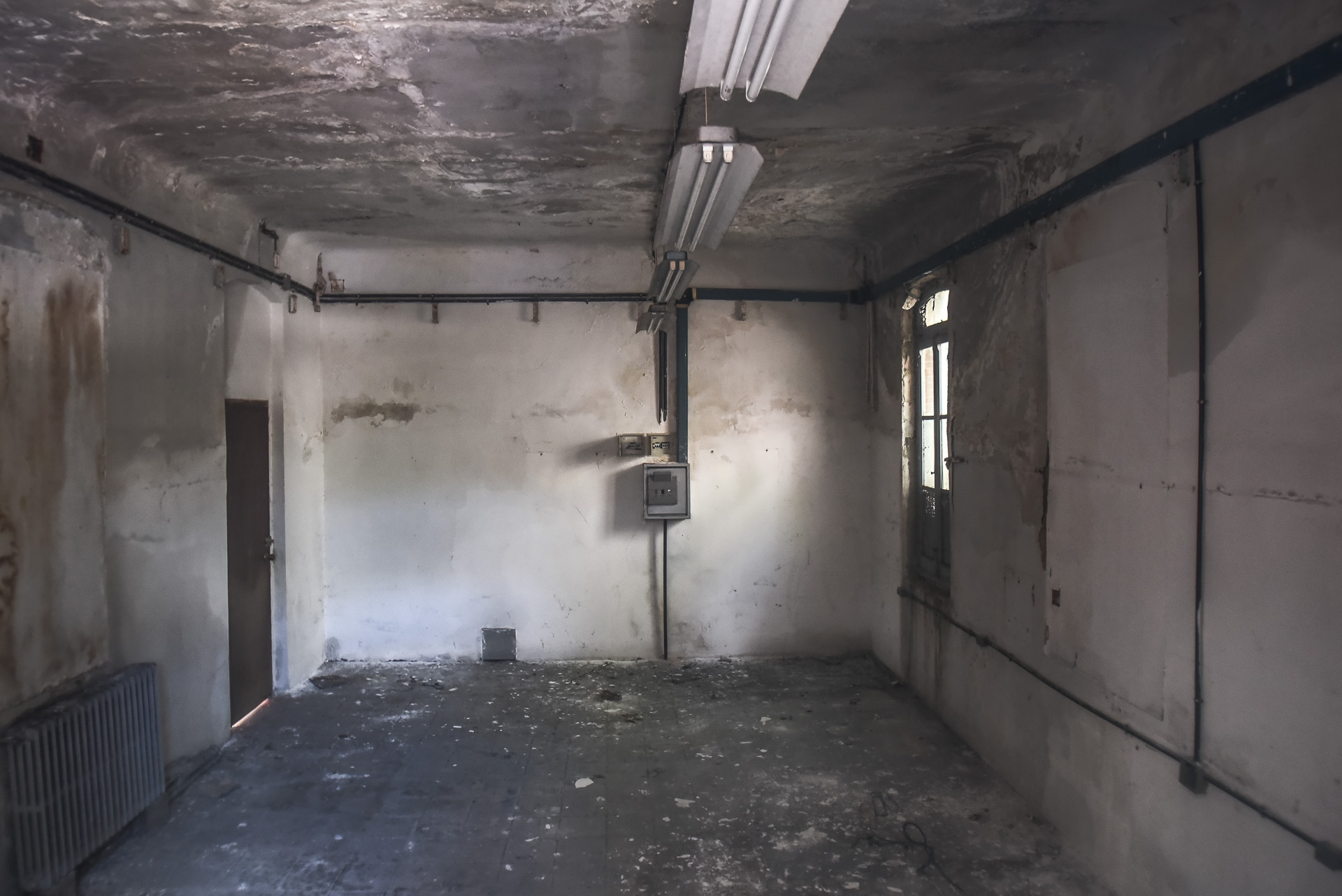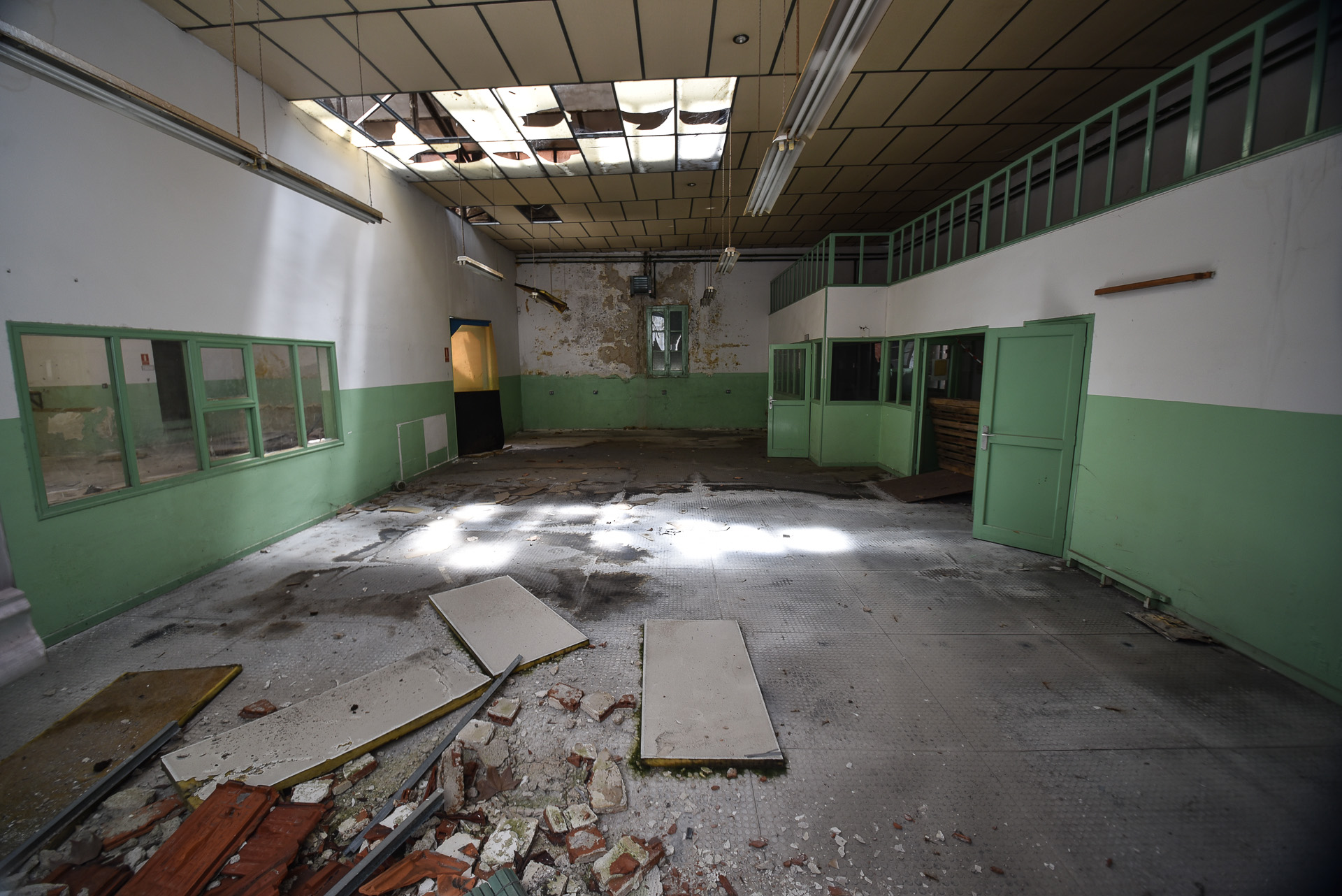 Estado de abandono en el interior de uno de los edificios del cuartel de armamento y material perteneciente al Ministerio de Defensa