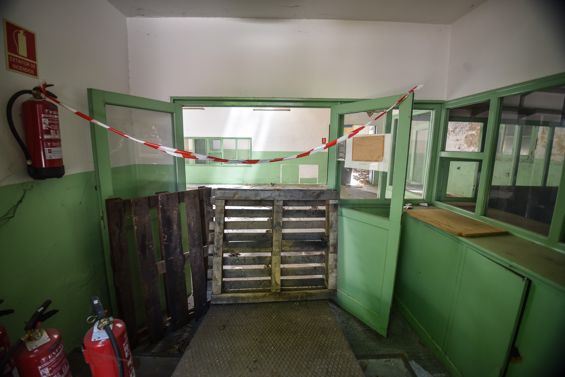 Papeles tirados por el suelo, paredes desconchadas denota la falta de mantenimiento en el interior de las instalaciones.