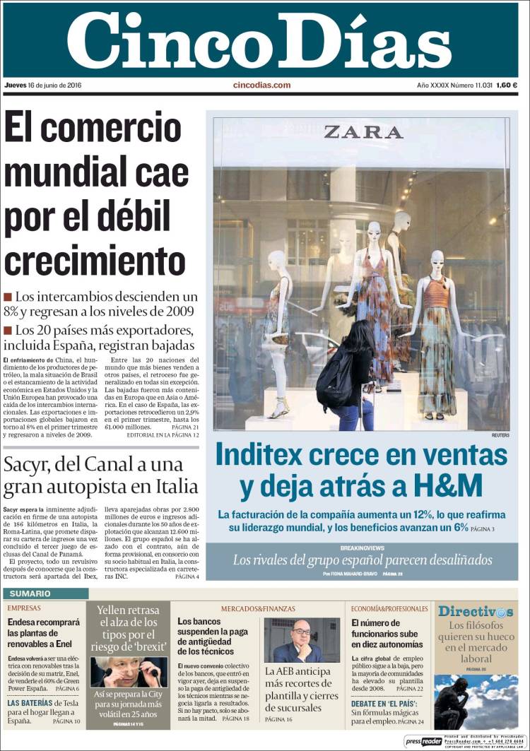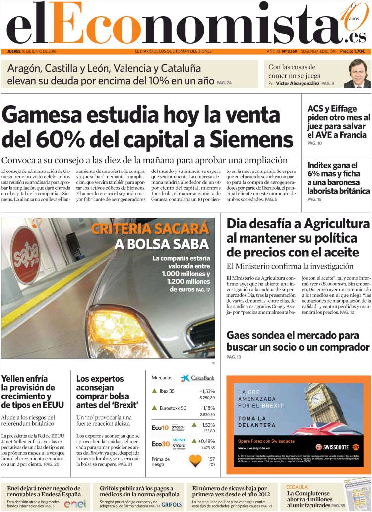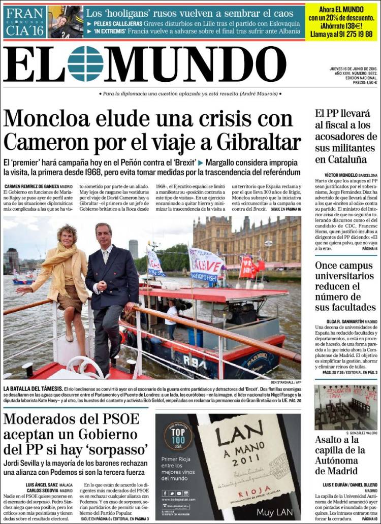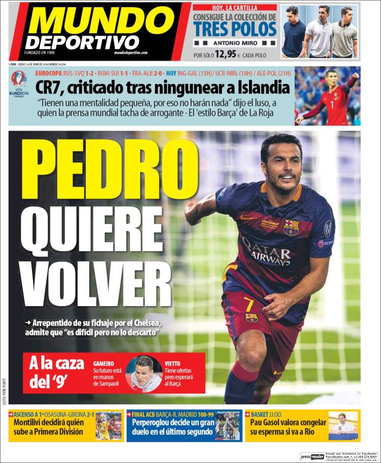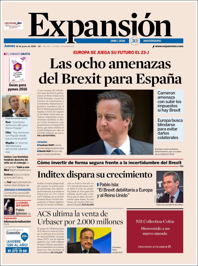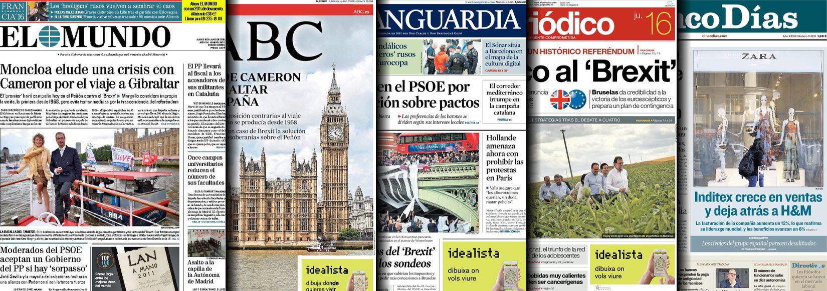 Portadas de los diarios El Mundo, El País, ABC, La Razón, La Vanguardia, El Periódico, Cinco Días, El Economista, Expansión, Marca, As, Mundo Deportivo y Sport.