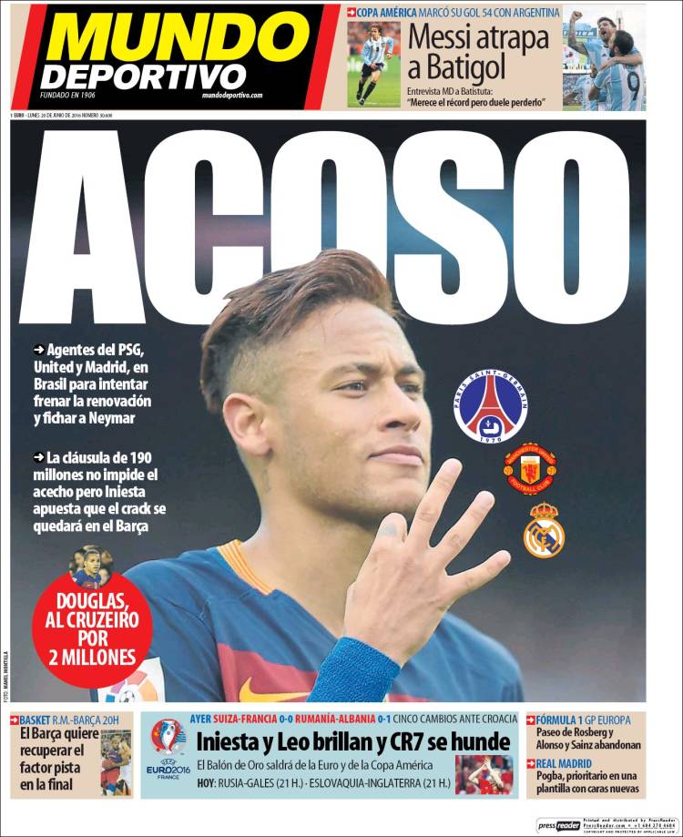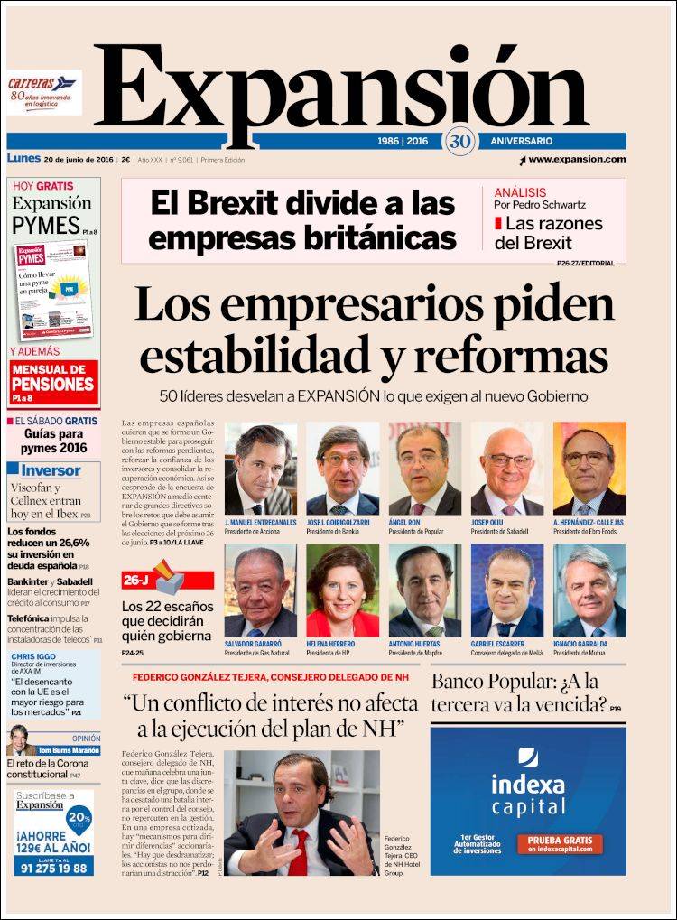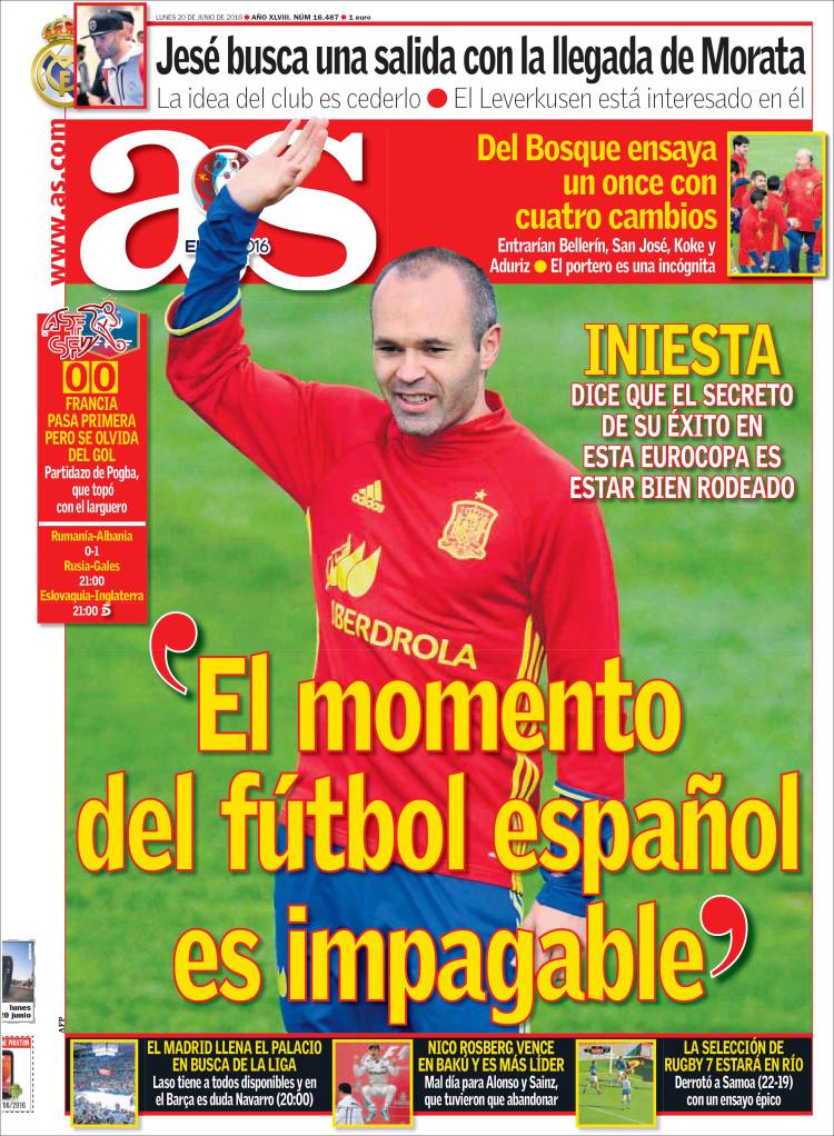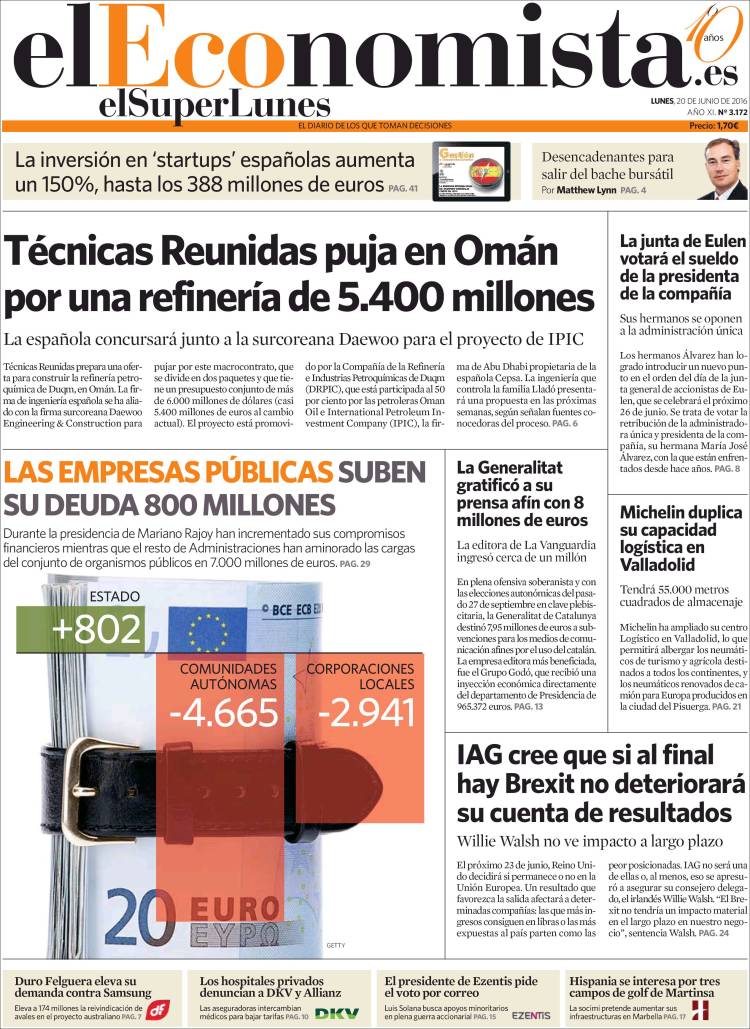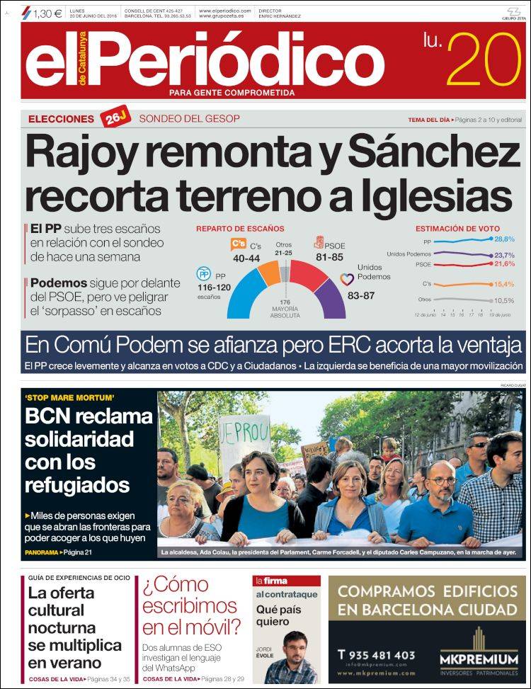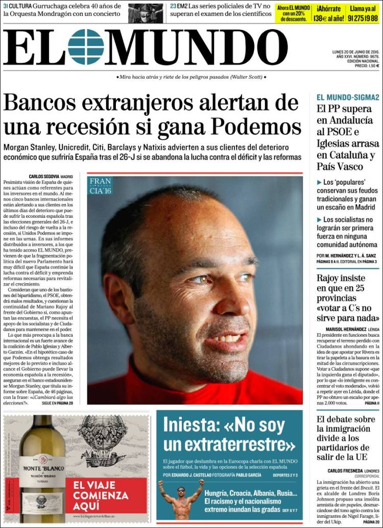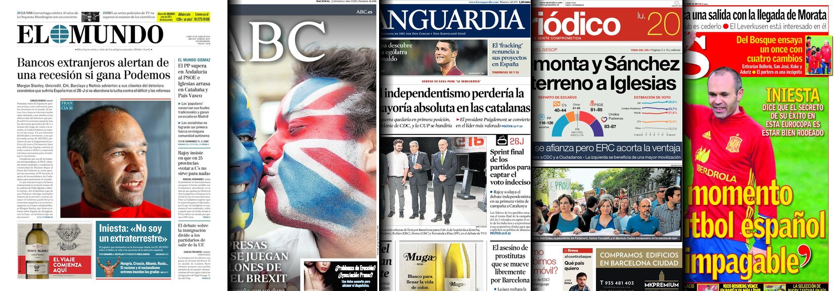 Portadas de los diarios El Mundo, El País, ABC, La Razón, La Vanguardia, El Periódico, Cinco Días, El Economista, Expansión, Marca, As, Mundo Deportivo y Sport.
