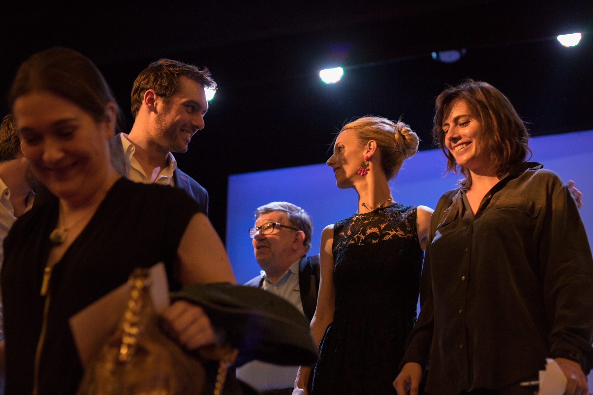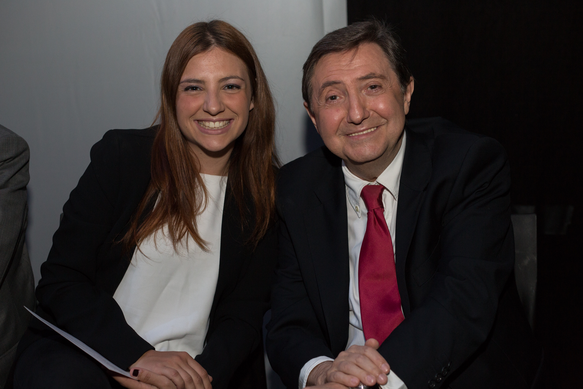 Andrea Mármol y Federico Jiménez Losantos, bajando del escenario.
