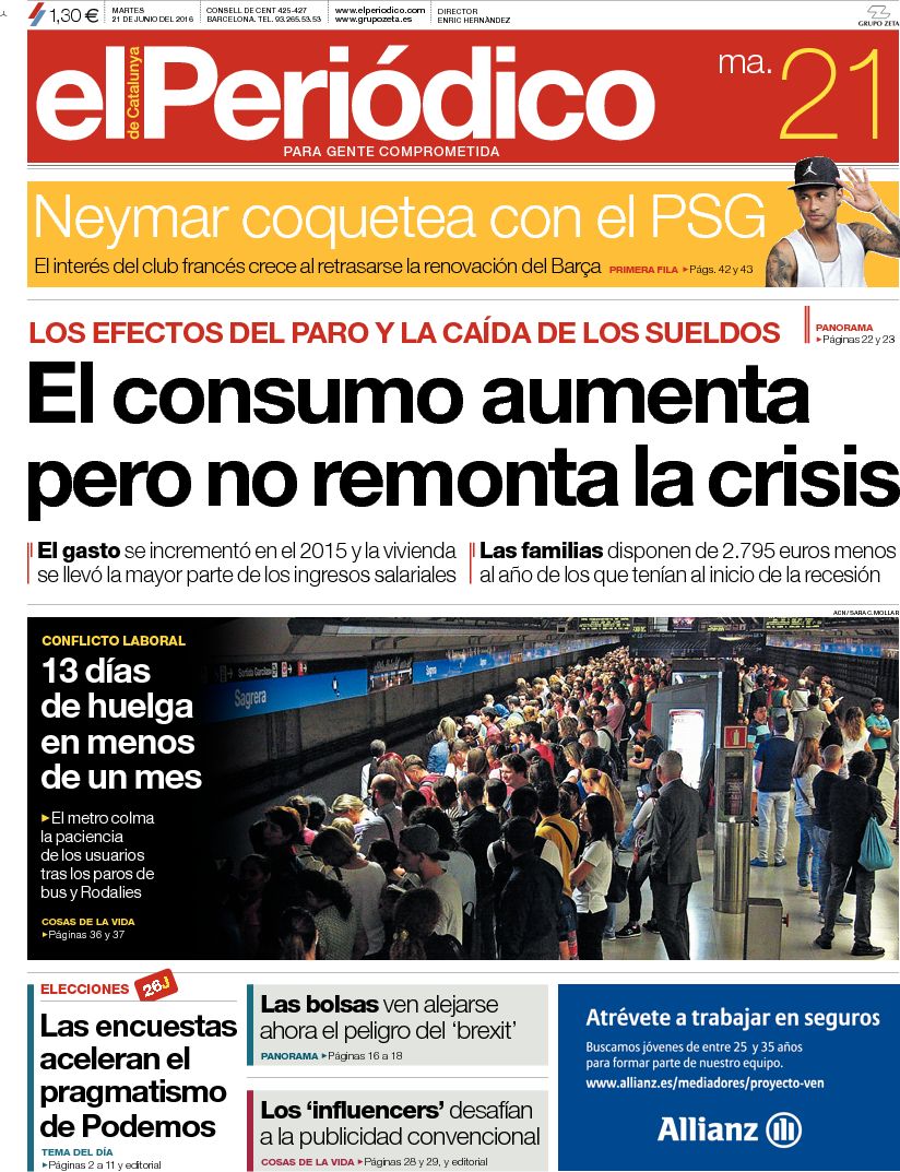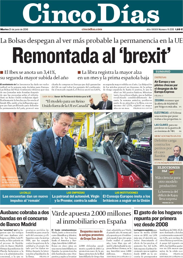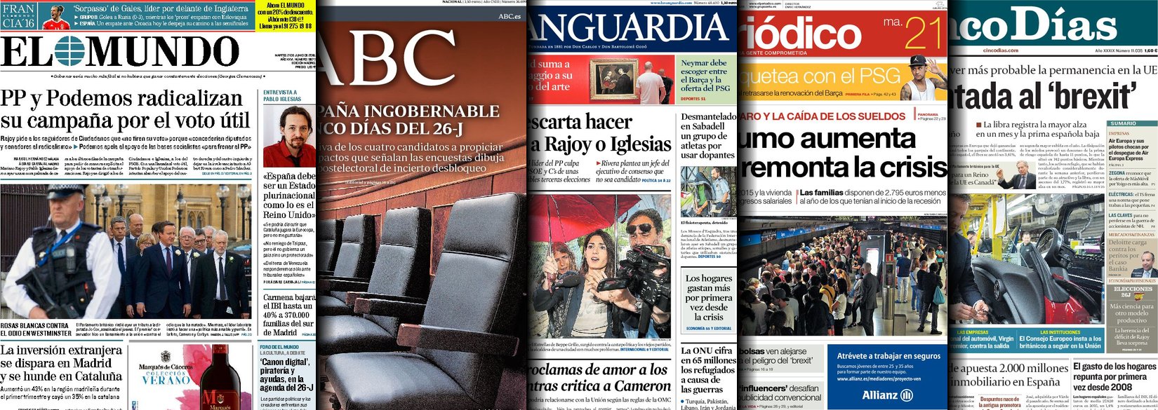 Portadas de los diarios ABC, As, Cinco Días, El Periódico y La Vanguardia.